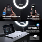 - 【Contrôle tactile pratique et télécommande Bluetooth 】 Doté d'une interface tactile, le grand anneau lumineux vous permet de régler facilement les paramètres d'éclairage d'un simple touche. L'écran haute résolution affiche intuitivement des informations sur l'état et les paramètres en temps réel. Une télécommande Bluetooth est incluse, qui vous permet de contrôler facilement la lampe LED à anneau lors de la prise de vue sans avoir à atteindre le panneau ou l'écran de votre téléphone.
