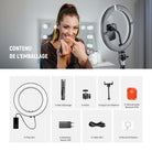 - 【Pour la Photo Avec un Téléphone】 Le support de téléphone qui tourne sur 360° peut maintenir votre téléphone verticalement et horizontalement. Ce grand éclairage circulaire avec trépied pour l'enregistrement vidéo selfie films vlogs, est compatible avec iPhone 16 15 Pro Max Plus, compatible avec Samsung S24 Ultra et autres smartphones. Le déclencheur Bluetooth de la ring light vous permet de faire des photos et des vidéos d'un simple clic
