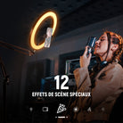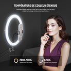 - 【Modes d'effets de scène CCT et FX】 Mode CCT offre une plage réglable de 2900K à 7000K pour des tons chauds à froids,ainsi qu'une gradation de 0 à 100% pour s'adapter à différents besoins d'éclairage.Réglage de l'éclairage permet de mettre en valeur toutes les carnations,d'illuminer visage et de minimiser les imperfections.Mode FX offre 12 effets de scène réalistes pour des vidéos professionnelles avec anneau lumineux.Utilisez la télécommande filaire pour obtenir rapidement les effets souhaités.