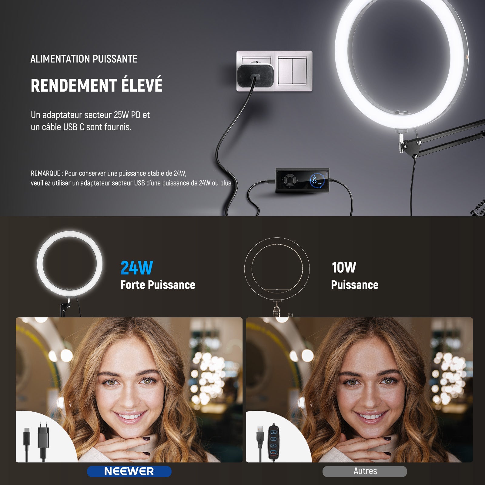 NEEWER RH12B Anneau Lumineux LED Haute Puissance 30,5cm 24W