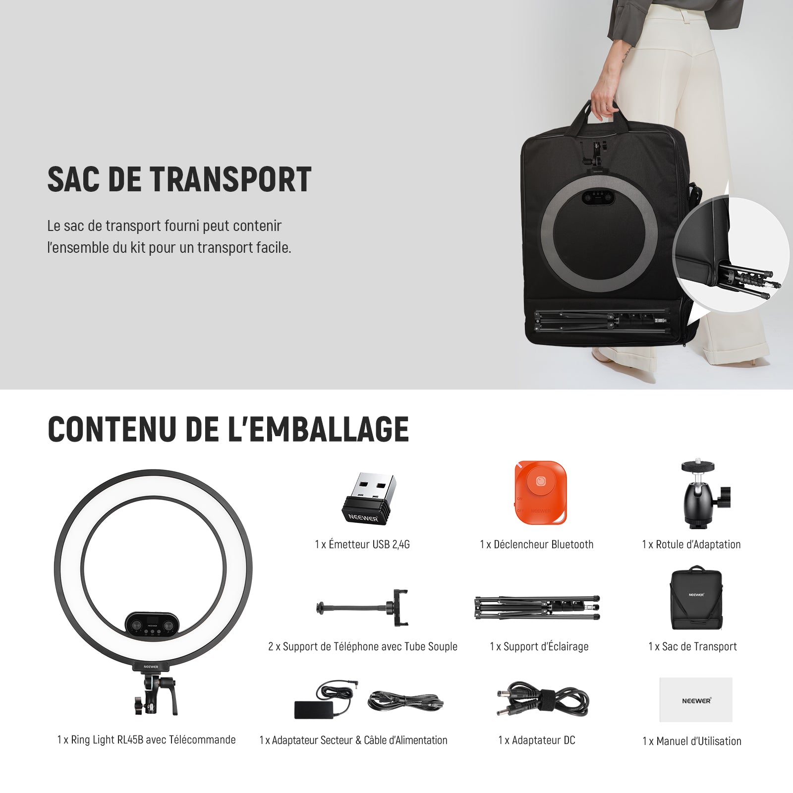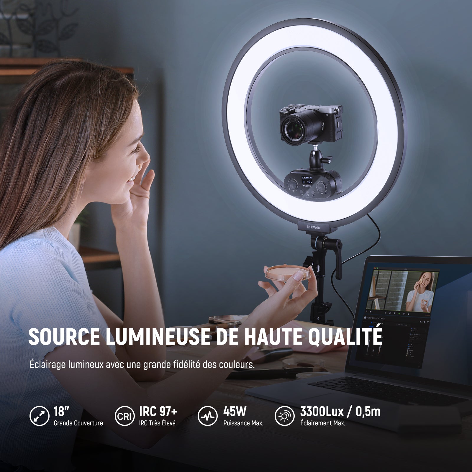 NEEWER RL45B 45W 18"Kit Ring Light LED Mince à Éclairage Latéral
