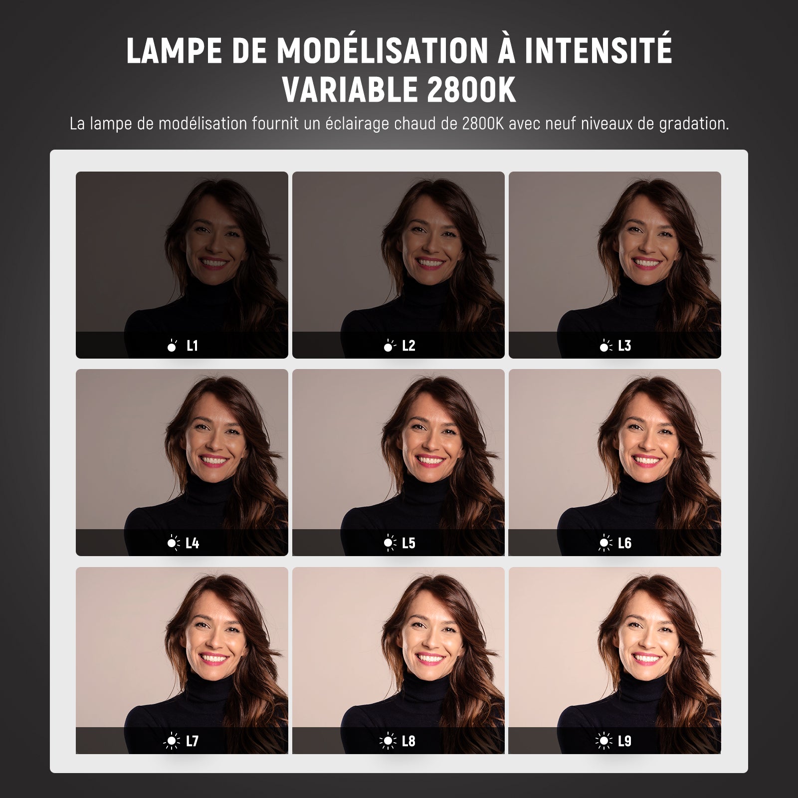 - 【Lampe de modélisation supérieure de 150W】 compacte mais performante, la lampe de modélisation de 150W dispose de 9 niveaux de luminosité (L1 à L9) et d'un réglage de la puissance du flash de 7,0 à 10 (1/8 à 1/1) pour correspondre aux conditions de lumière ambiante. Une durée de flash de 1/2000 à 1/800s et un temps de recyclage de 0,4 à 2,8s. Le tube flash avec une puissance de sortie stable résiste à chaleur élevée, à haute tension,à déformation et à casse.Fonction mémoire enregistre paramètres