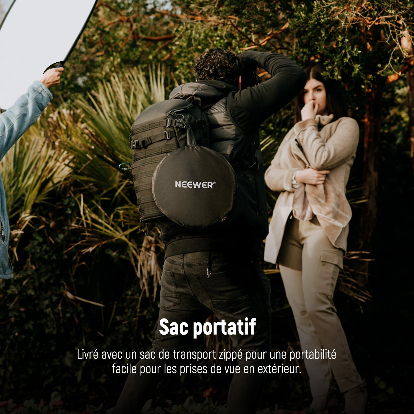 • 【Construit pour durer】 fabriqué à partir de polyester de qualité sélective et d'acier allié, notre réflecteur de lumière photographique est fait pour durer. Il est résistant à la déchirure ou à la décoloration, pliable mais difficile à déformer, garantissant des performances durables pour les reflets photographiques