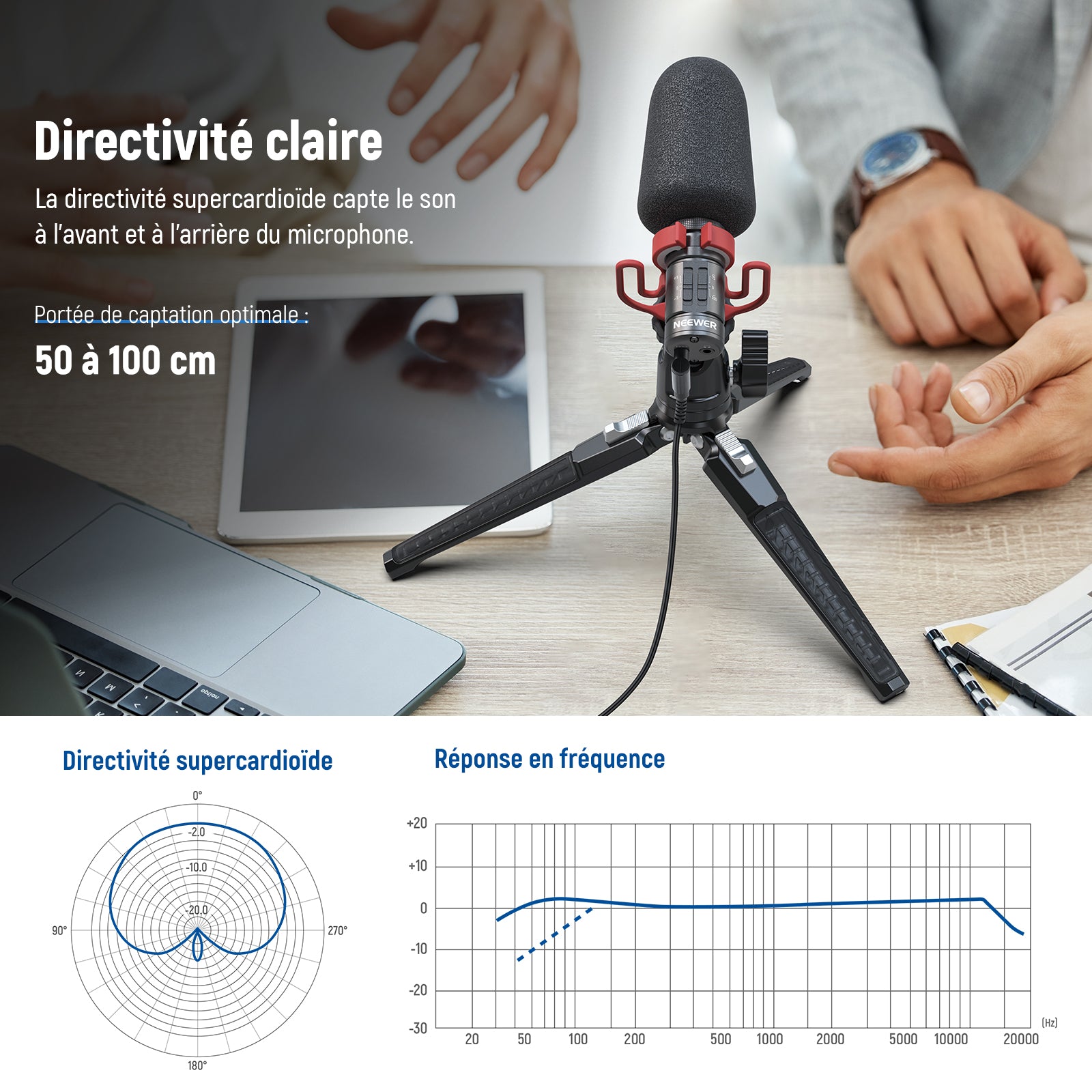 NEEWER Vlog VM10 Micro Supercardioïde Plug & Play