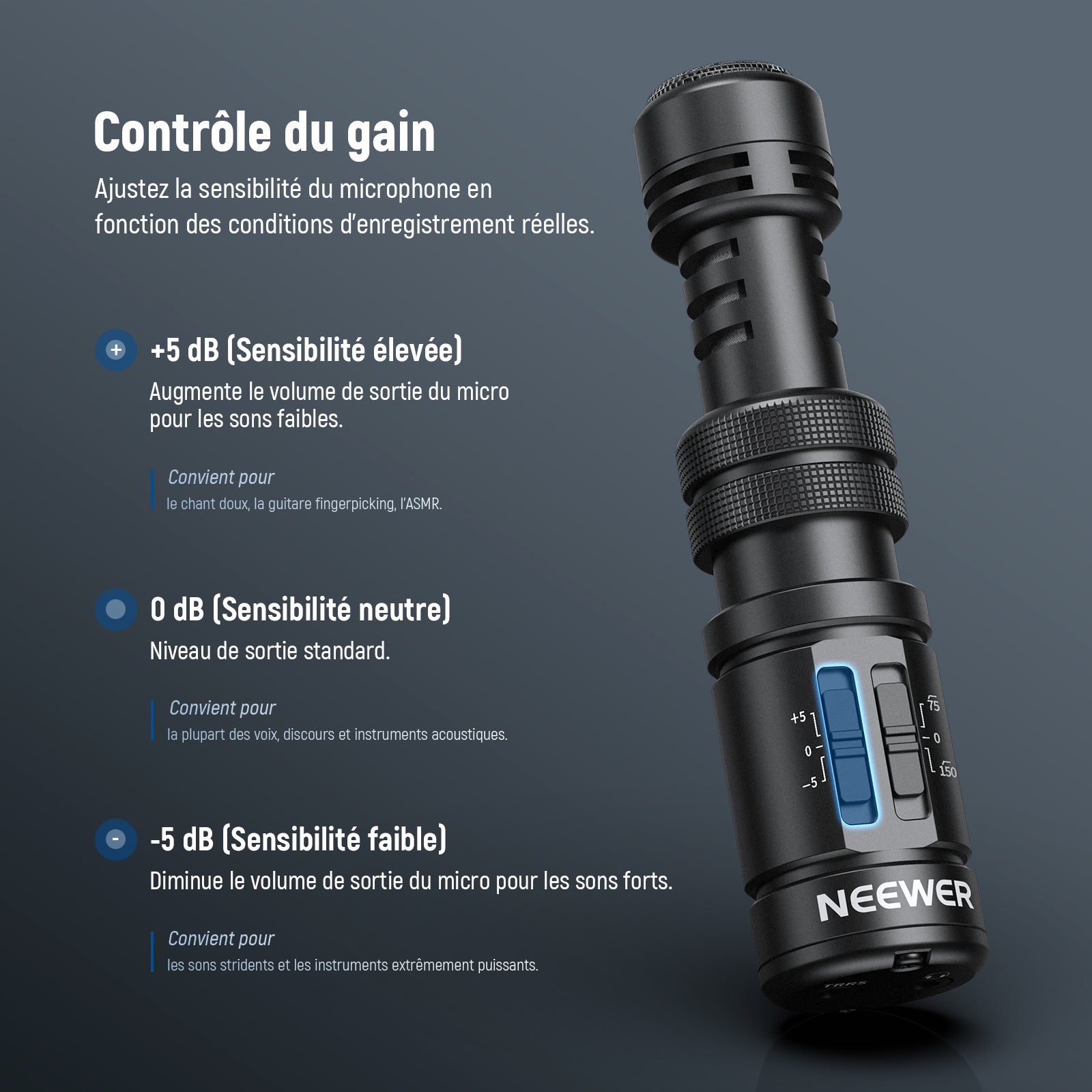 NEEWER CM5 microphones à condensateur omnidirectionnels filaires à revers