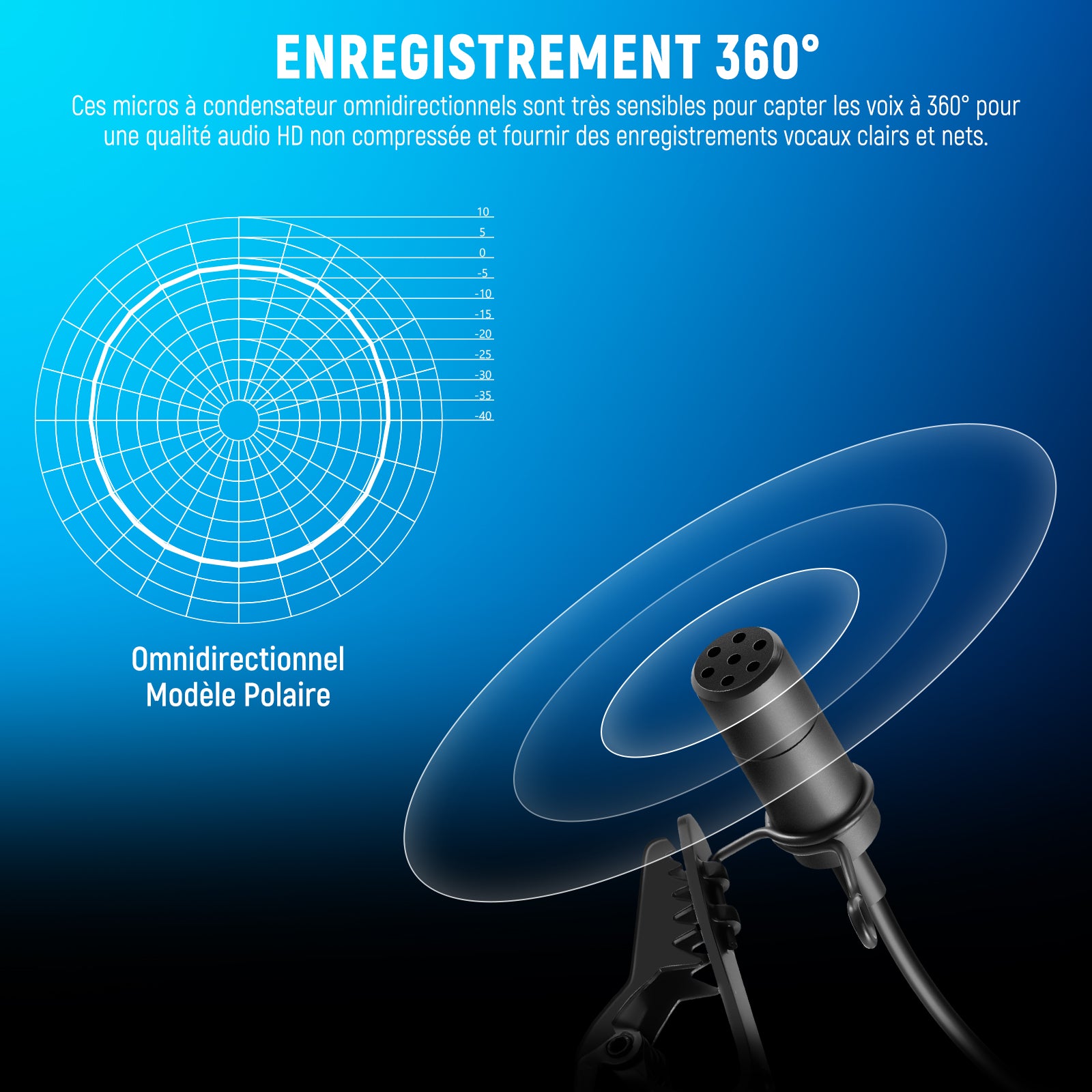 - 【Condensateur omnidirectionnel pour une haute fidélité】 Ces micros à condensateur omnidirectionnels sont très sensibles pour capter les voix à 360° pour une qualité audio HD non compressée et fournir des enregistrements vocaux clairs et nets
