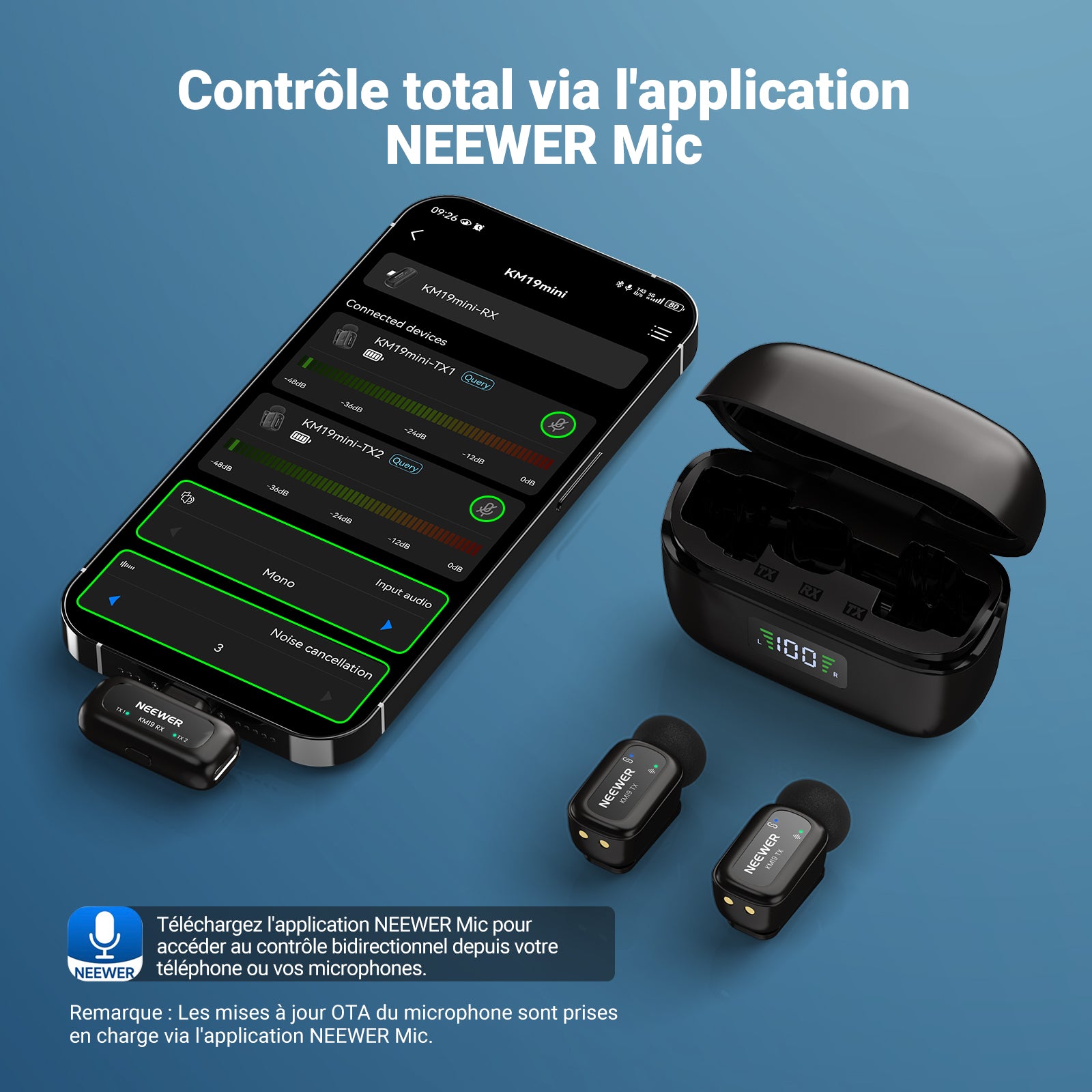 - 【Simplifiez votre flux de travail】 Cet émetteur micro sans fil se connecte directement à votre smartphone ou tablette via l'application NEEWER View: aucun récepteur ni câble n'est nécessaire et aucun port de charge n'est occupé.