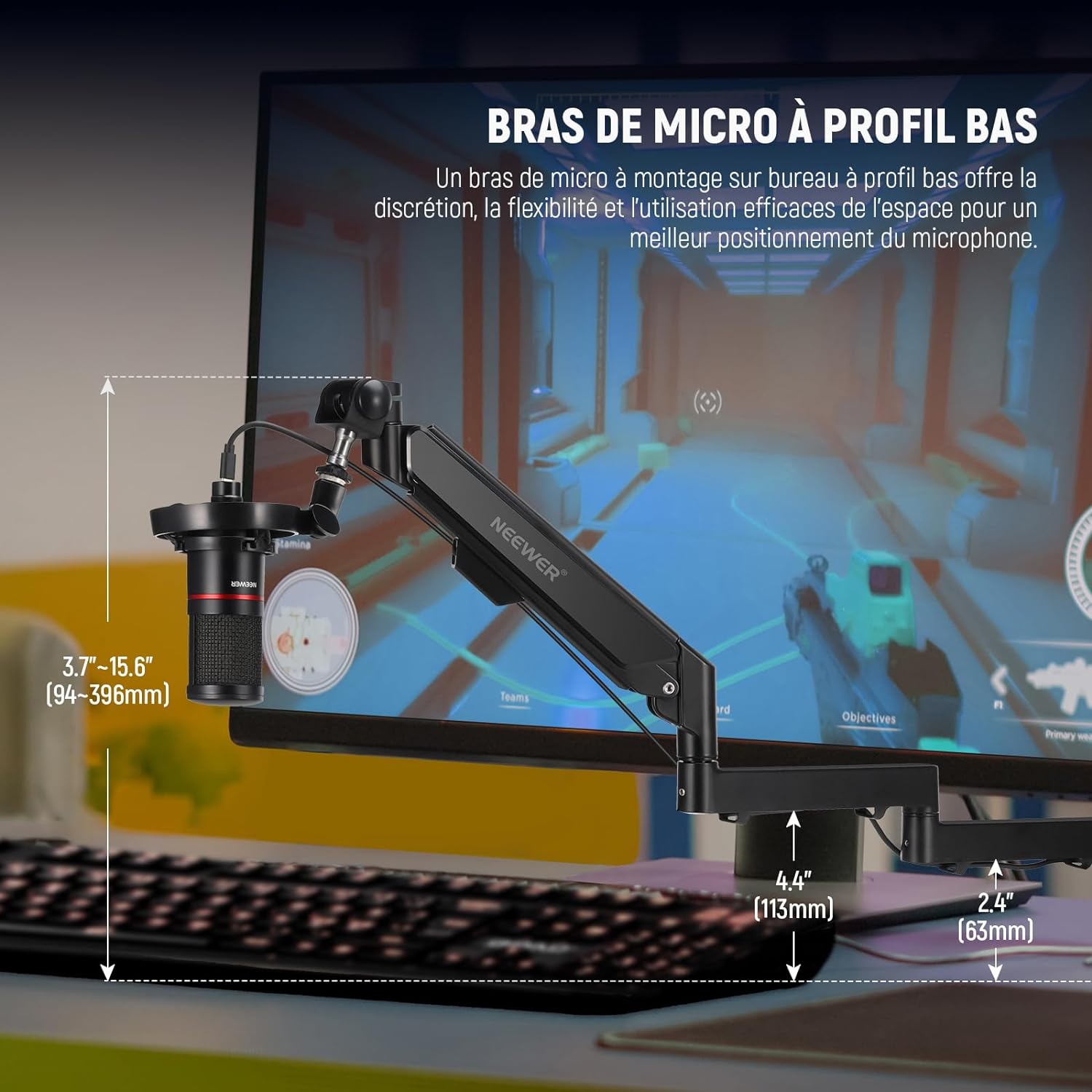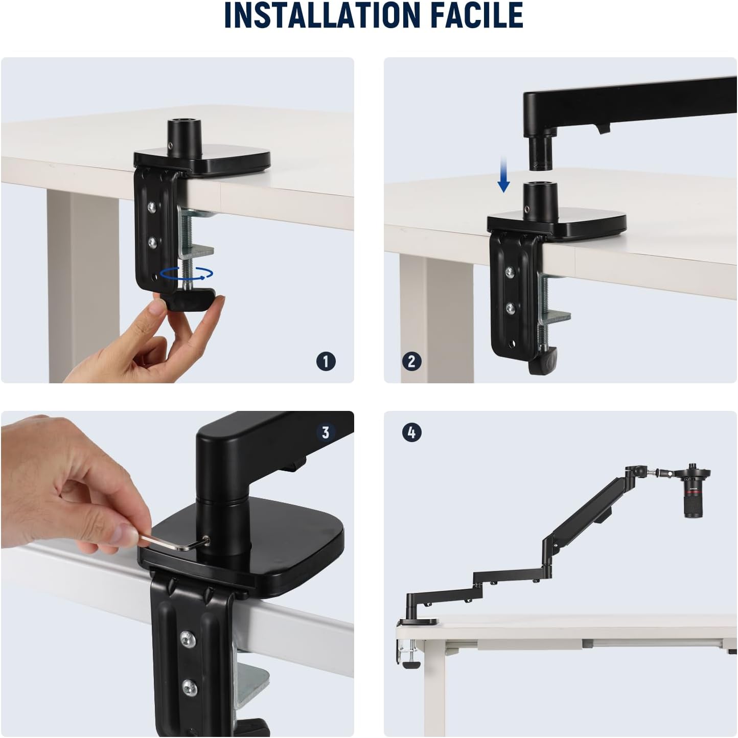 - 【Support de bureau à profil bas entièrement en métal】Ce support de bureau élégant et à profil bas maintient en toute sécurité les microphones, les caméras ou les moniteurs à une hauteur de 3,7" à 15,6"/9,4 à 40cm au-dessus du bureau, permettant un repositionnement rapide et un champ de vision plus large. Construit avec une technologie CNC avancée, de l'aluminium et de l'acier inoxydable, il garantit une installation facile, une résistance à la rouille et une stabilité améliorée.