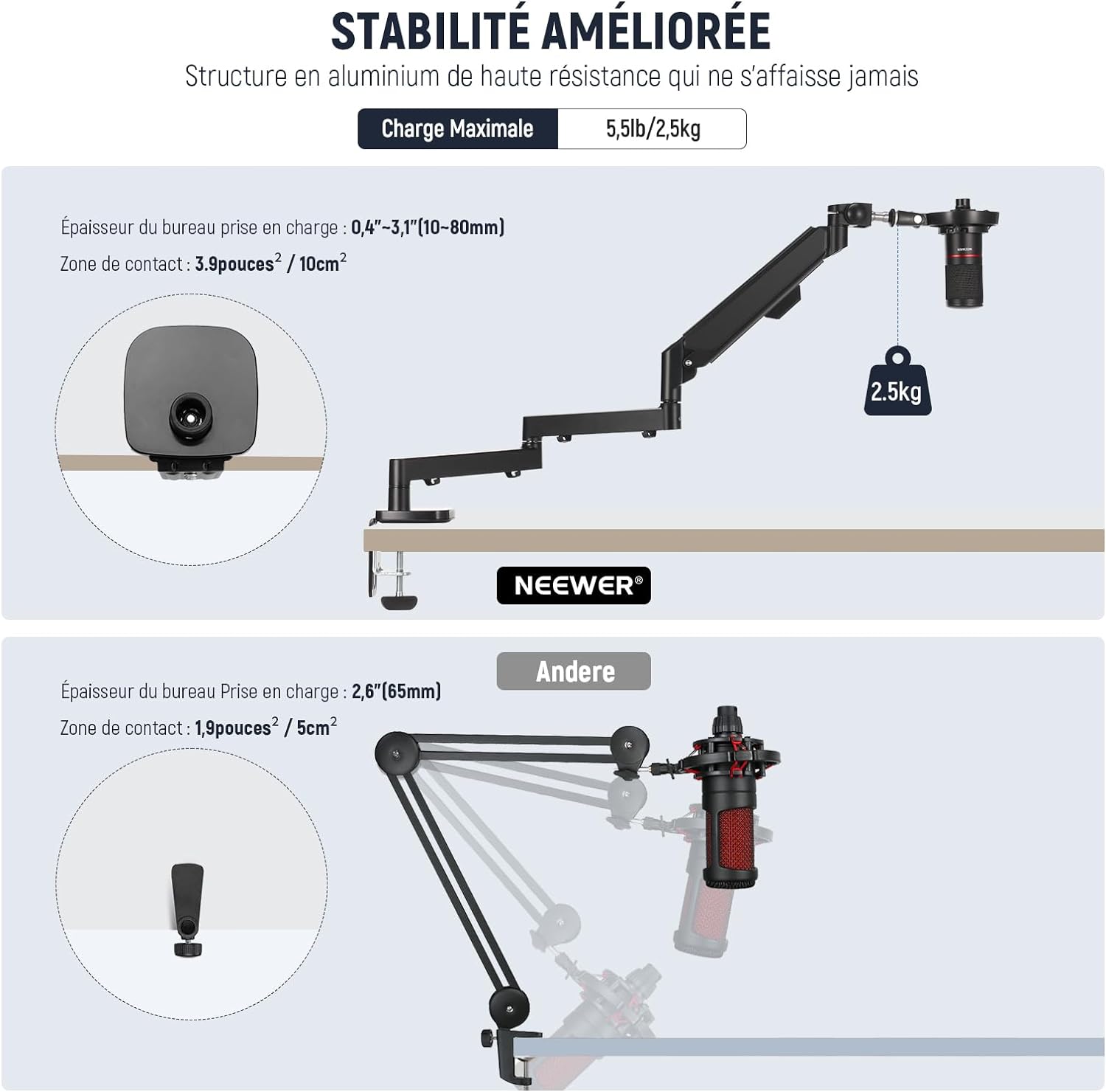 NEEWER MS002 Support de bureau pour bras de micro à profil bas