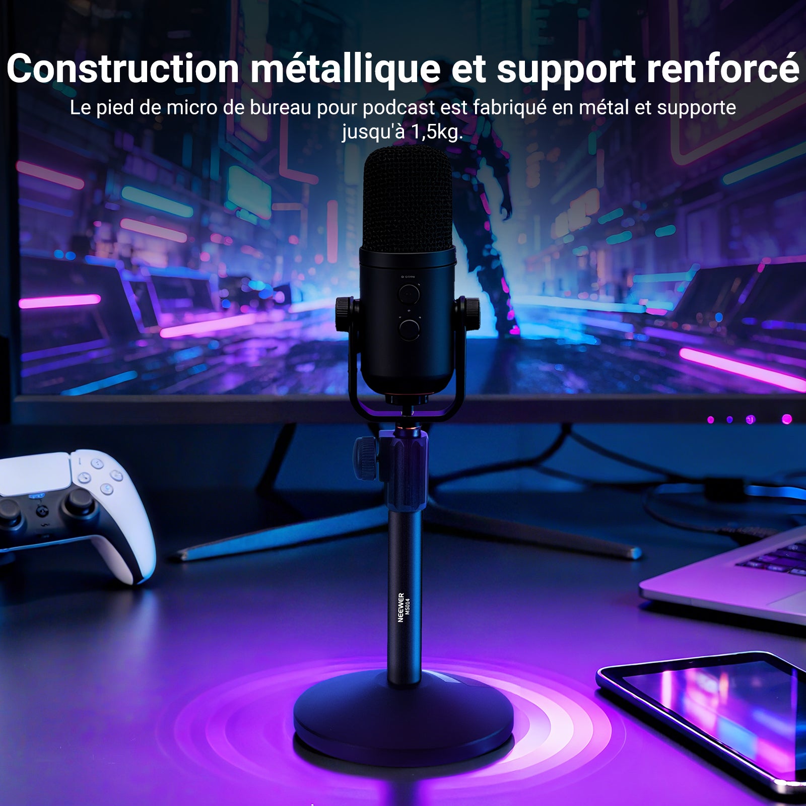 - Construction en métal et soutien amélioré : le support de micro podcast de bureau est fabriqué en métal, supportant jusqu'à 1,5 kg, compatible avec les microphones et accessoires et équipements pour podcasting, jeux, streaming en direct, enregistrement vidéo en studio, etc.