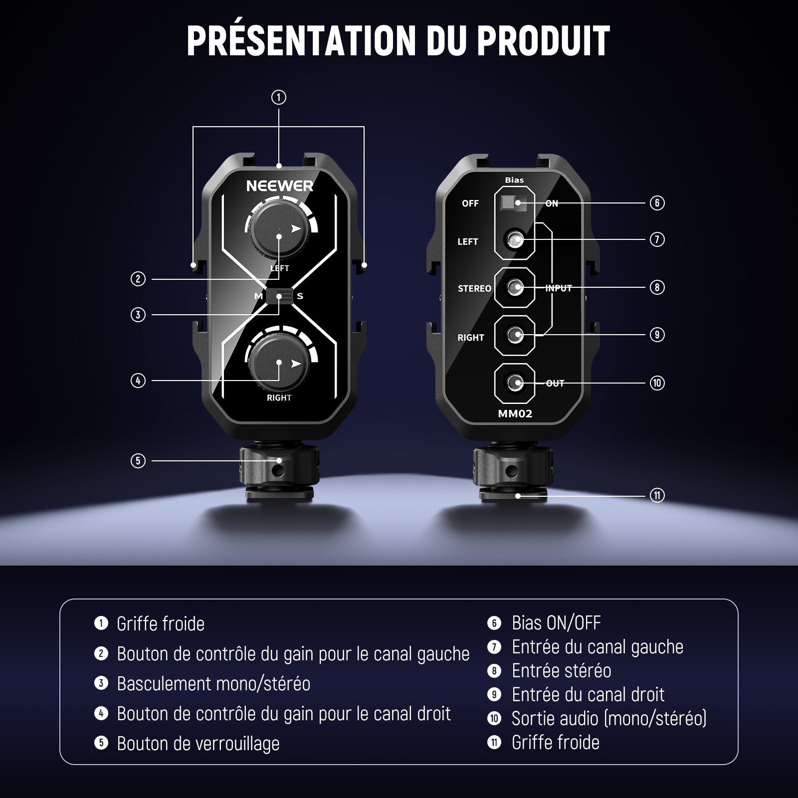 NEEWER MM01/MM02 Adaptateur de Mixage Audio pour Microphone