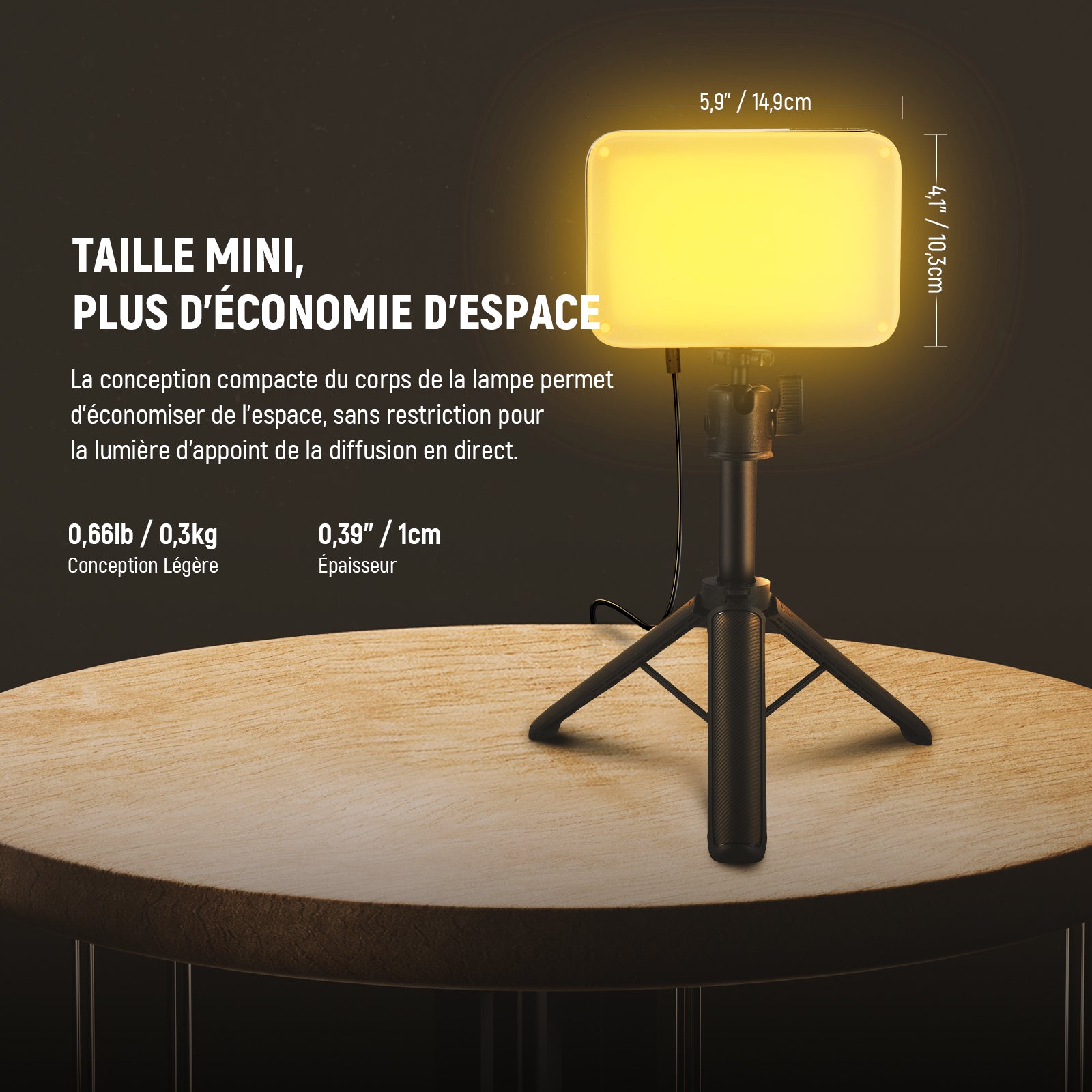 • 【Éclairage polyvalent Options】Cette lampe vidéo LED compacte offre une gradation sur 10 niveaux, réglable par une pression courte, et une gradation continue par une pression longue. Avec un IRC élevé de 95, elle garantit une reproduction fidèle des couleurs, vous permettant d'être sous votre meilleur jour devant la caméra. Elle est idéale comme éclairage de bureau pour les appels vidéo, les selfies ou la création de contenu multimédia.
