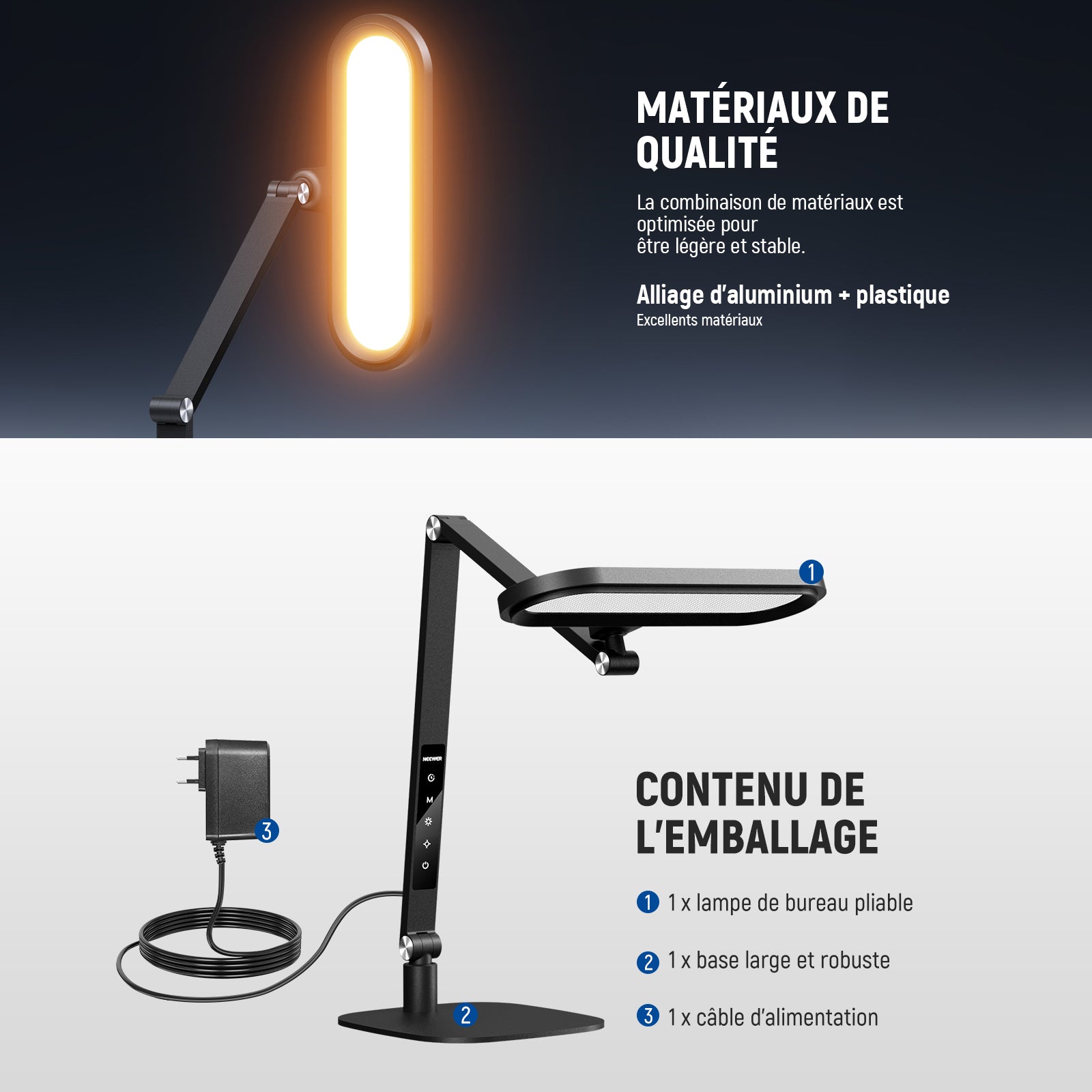 - 【Présentation de NEEWER BASICS】Simple et pratique,NEEWER BASICS est une gamme de produits économiques qui se concentre sur les fonctions et le design essentiels.Avec ses 84 LED et son film diffuseur,FR16 offre une lumière vive,douce uniforme,sans lumière bleue,scintillement ni éblouissement.Indispensable pour bureau,télétravail,études en résidence universitaire, lecture,un bureau d'ordinateur/de jeu,pour les accessoires et fournitures photo des streamers, créateurs de contenu et influenceurs.