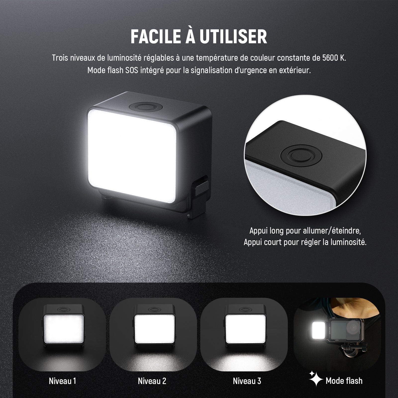 - 【Lumière ultra légère et étanche pour appareil photo】cette petite lampe photo d'action pour photographie mesure seulement 44 x 41 x 25mm et ne pèse que 39g. Son design ultra compact assure une portabilité facile et un éclairage fiable sans ajouter de volume à votre appareil photo, idéal pour les prises de vue en déplacement. Avec un indice d'étanchéité IPX5, il est conçu pour résister aux conditions extérieures sans crainte de dommages causés par l'eau