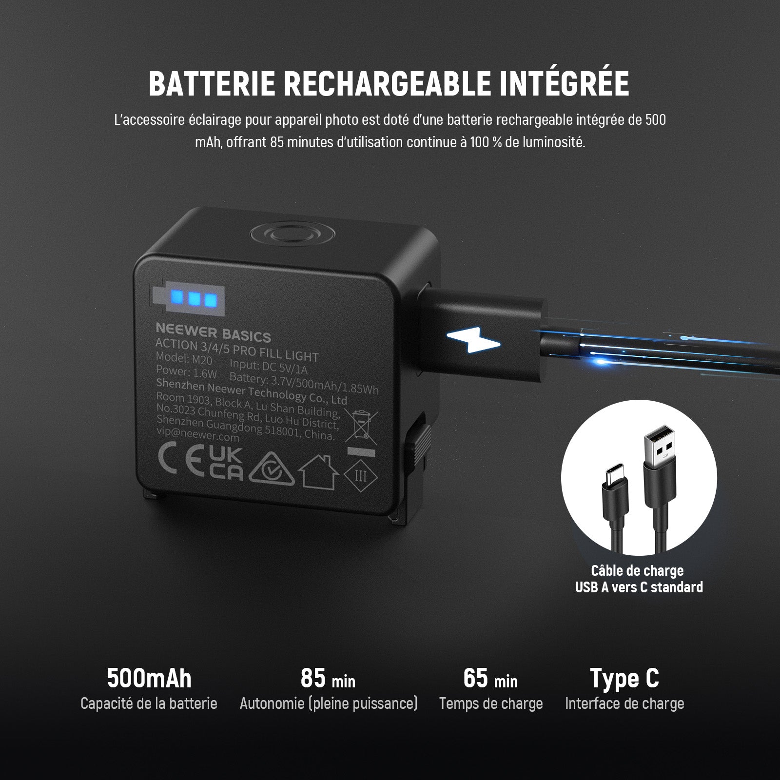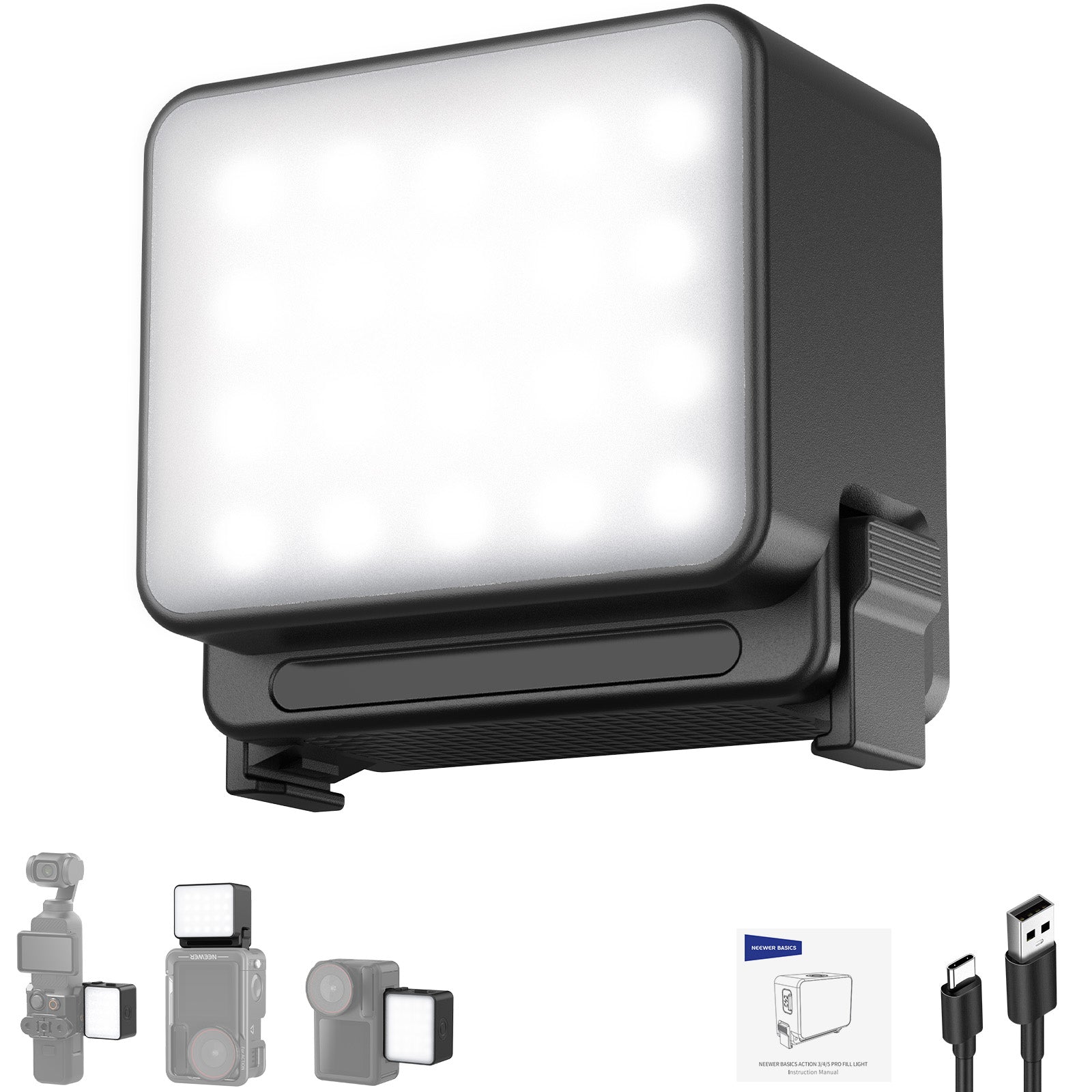 - 【Présentation de NEEWER BASICS】Simple et pratique, NEEWER BASICS est une gamme de produits économique qui se concentre sur les fonctions et les designs essentiels, sans extras ni matériaux inutiles.M20 est une petite lumière LED légère pour la photographie et la vidéo,avec 20 LED pour fournir une grande luminosité pour les vlogs, selfies, vidéos,etc.Compatible avec DJI Osmo Action 3/4/5 PRO et pour NEEWER AC009 PRO Cage,c'est un accessoire d'éclairage idéal pour des configurations simplifiées