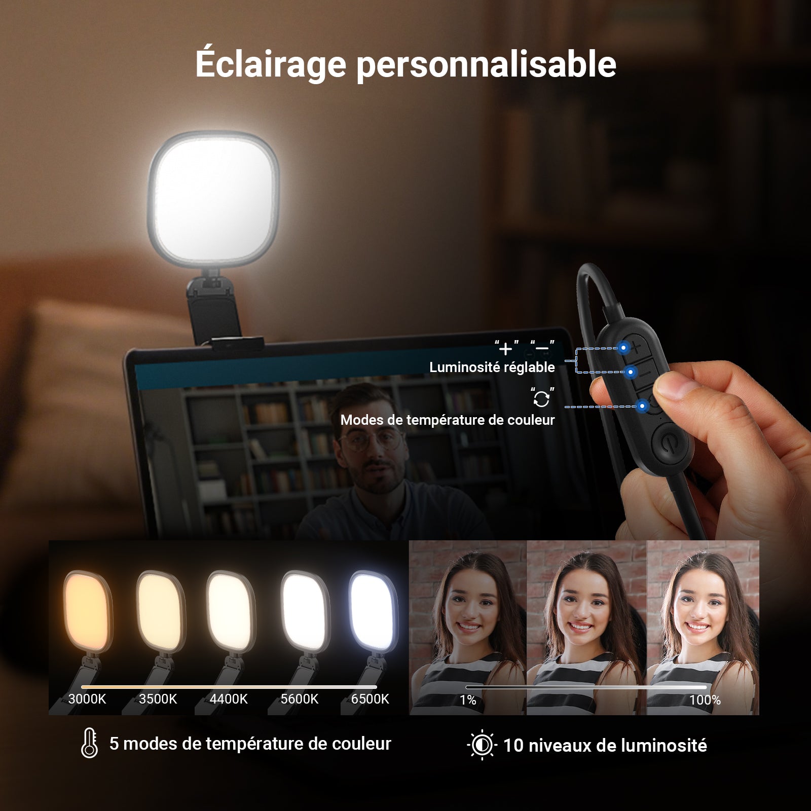 - 【Technologie Edge Lit pour un éclairage doux et zoom】Anneau lumineux 10W pour ordinateur portable et écran de visioconférence,d'une taille de 12,7 x 12,7cm,adopte une technologie Edge Lit avancée pour diffuser une lumière continue douce et uniforme, douce pour les yeux,minimisant les reflets et éliminant la lumière bleue,créant ainsi un environnement confortable et agréable pour les yeux lors de longues sessions de travail.Avec un CRI élevé de 95,il garantit une reproduction fidèle des couleurs