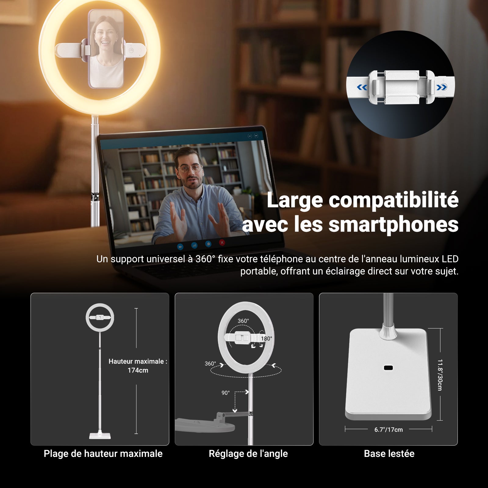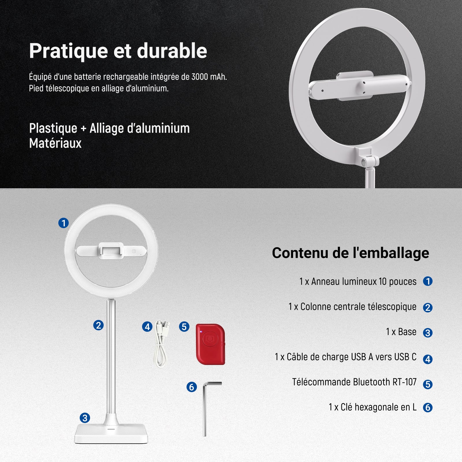 - Diamètre de l’anneau lumineux : 10" / 25 cm