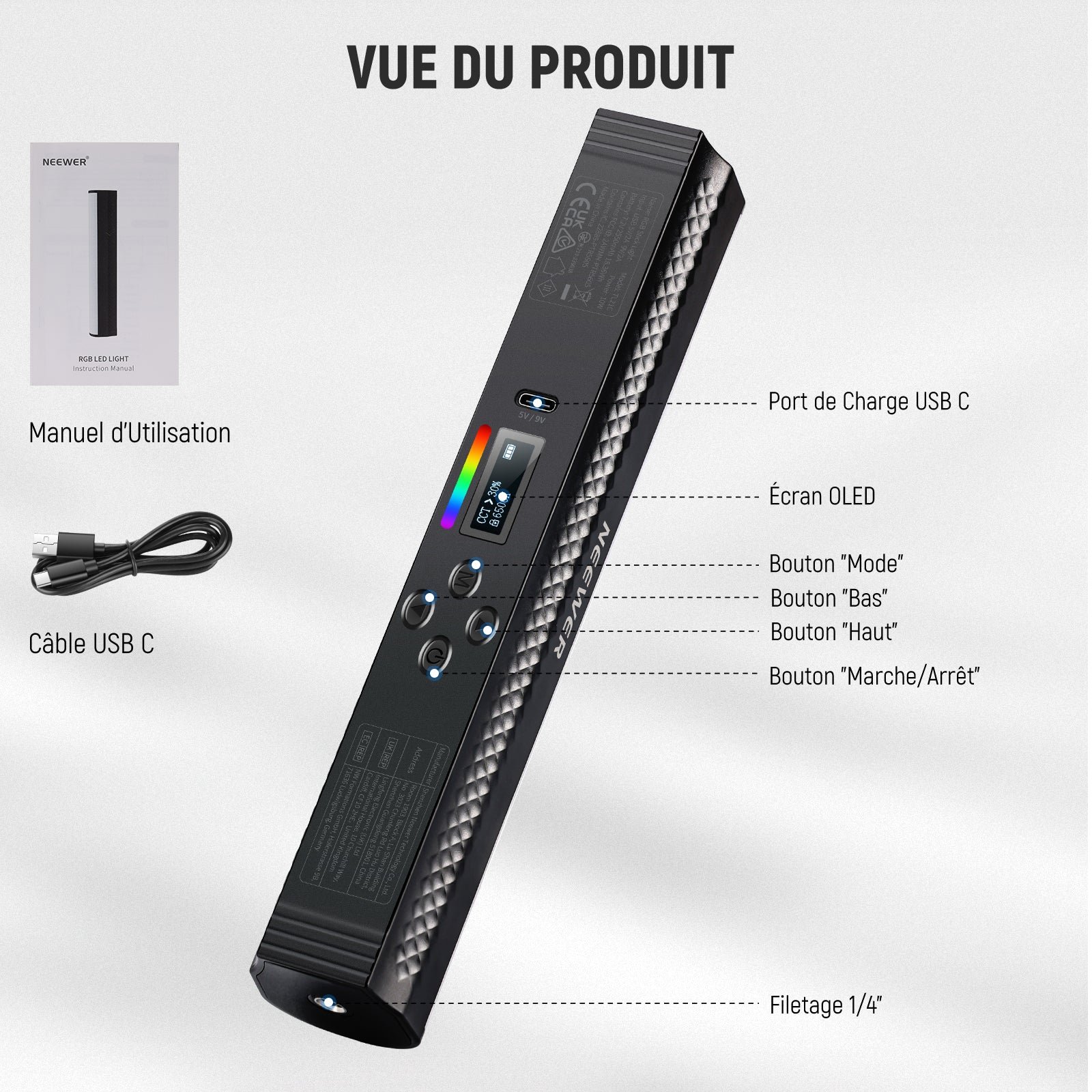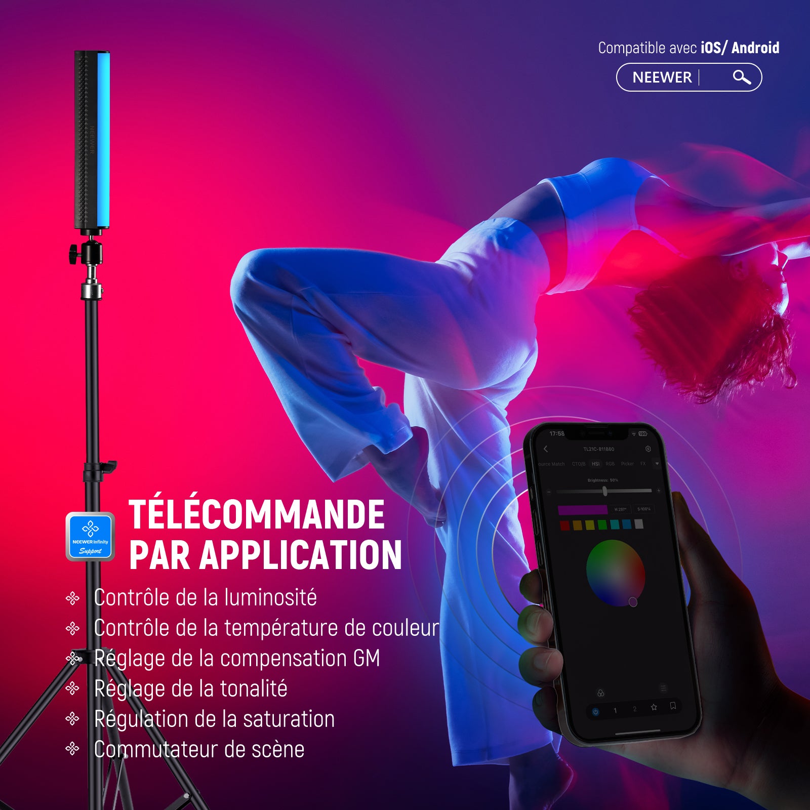 NEEWER TL21C RGB Teinte Stick Light Magnétique Portatif APP Contrôle