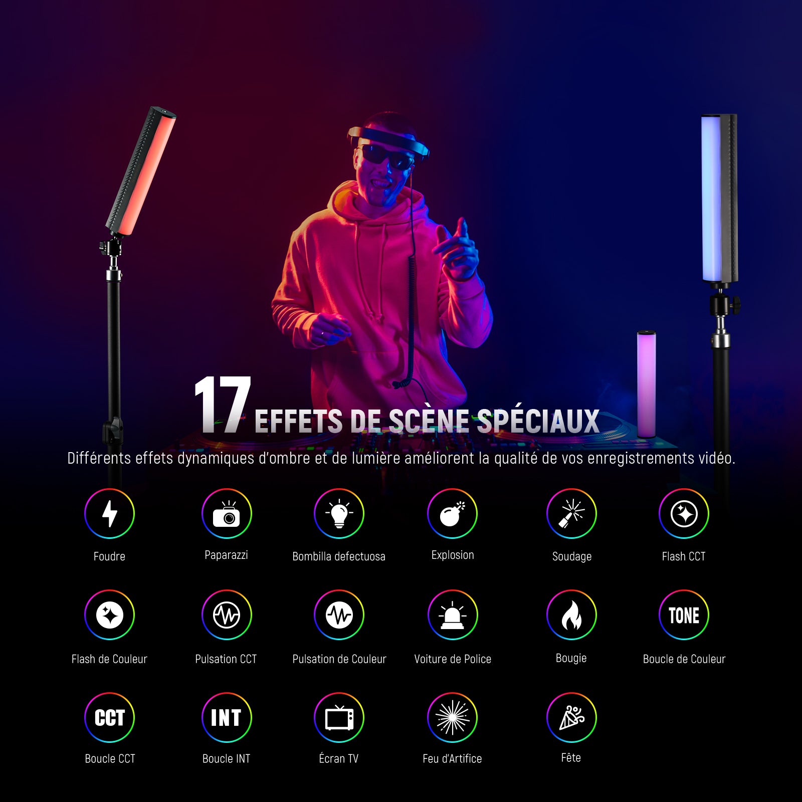 - Type d'article : Bâton lumineux RGB
