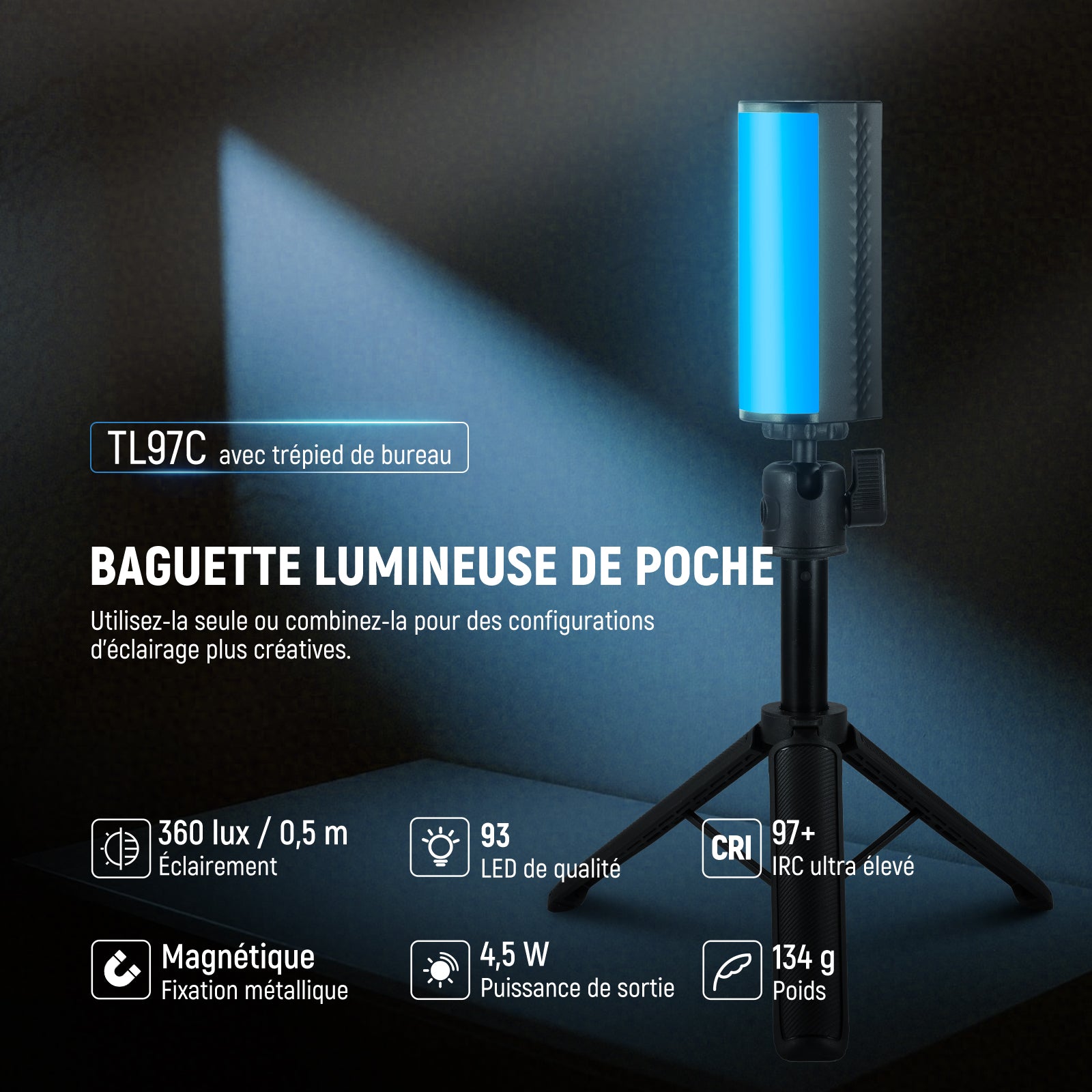 NEEWER TL97C Stick LED Magnétique avec Trépied Bureau