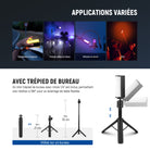 - 【Plusieurs Options de Montage】 Grâce aux trous filetés 1/4" aux deux extrémités, ce stick LED portable est montable sur un trépied ou un pied d’éclairage. Il peut aussi être aimanté sur des surfaces métalliques pour des prises de vue en hauteur ou à faible angle. Tenez-le à la main en concert, KTV, ou soirée pour une ambiance immersive, ou combinez plusieurs sticks pour divers effets lumineux. Ce produit comprend également un mini trépied de bureau avec une rotation de 360°.