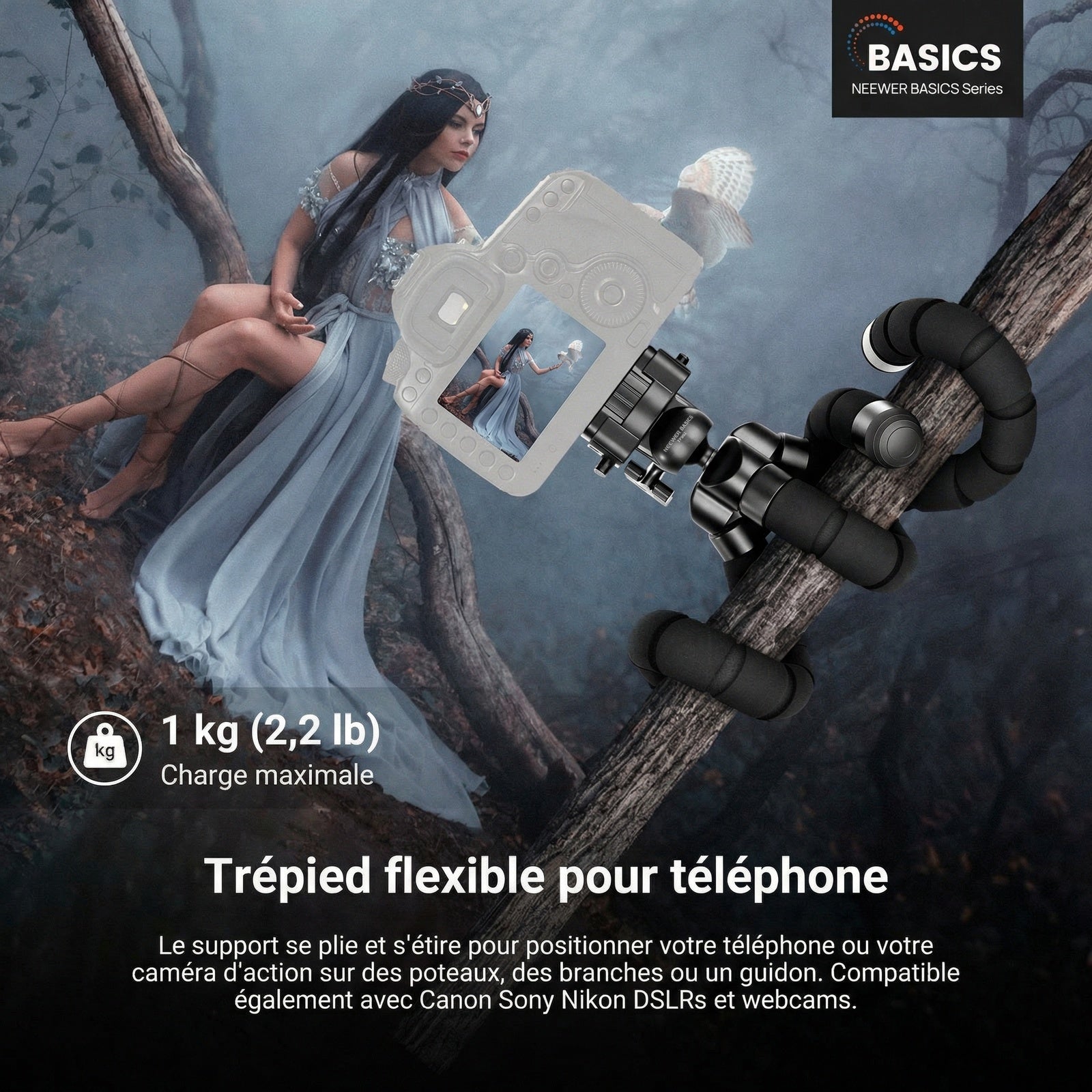 - 【Trépied flexible pour téléphone】 Ce support de bureau pour téléphone portable s'enroule facilement autour de poteaux, de branches ou de guidons. Il se plie et s'étire pour positionner votre téléphone ou votre caméra d'action comme vous le souhaitez. Compatible avec Canon Sony Nikon DSLRs, ainsi qu'avec les webcams. Charge maximale: 1kg