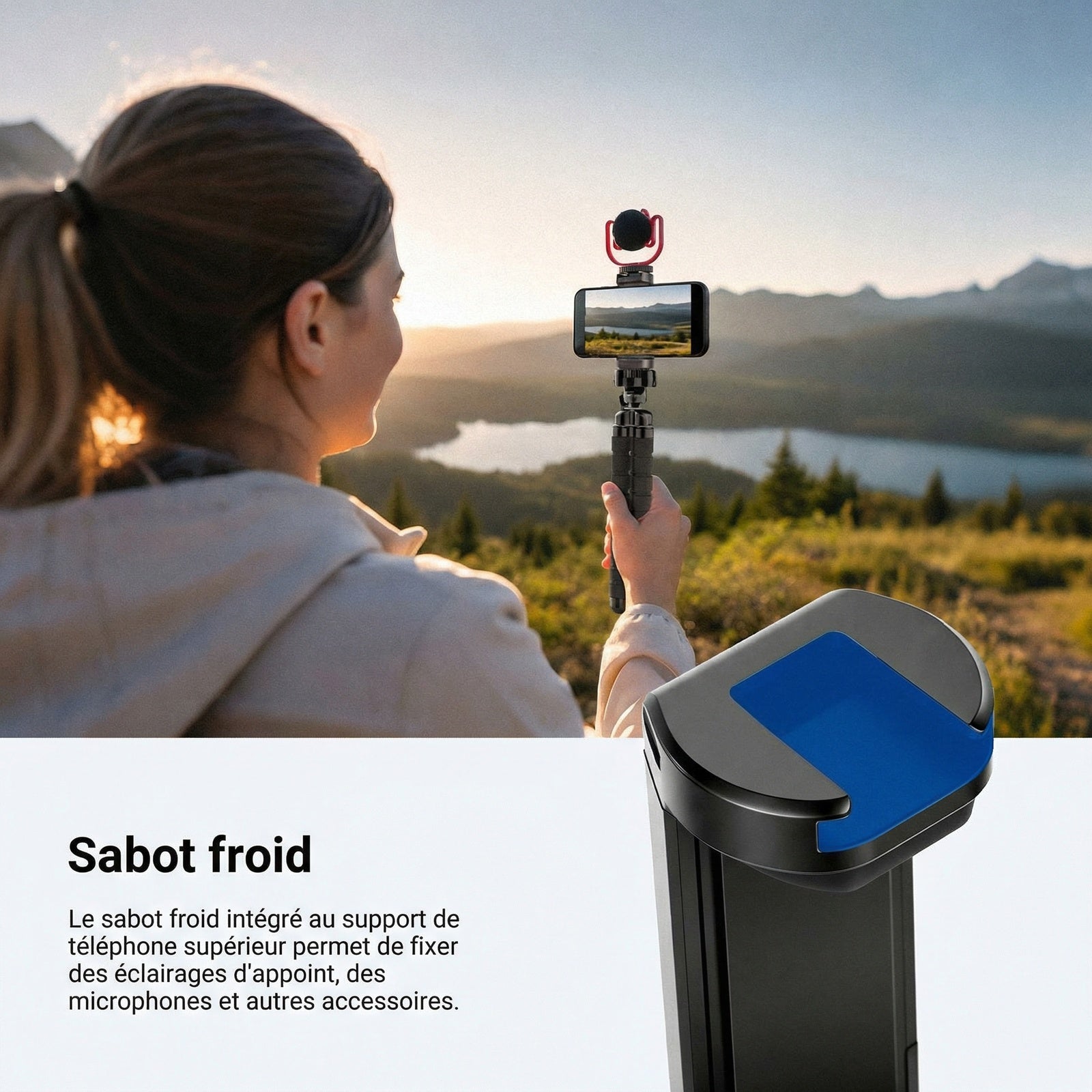 - Compatibilité : Téléphone & caméra d’action