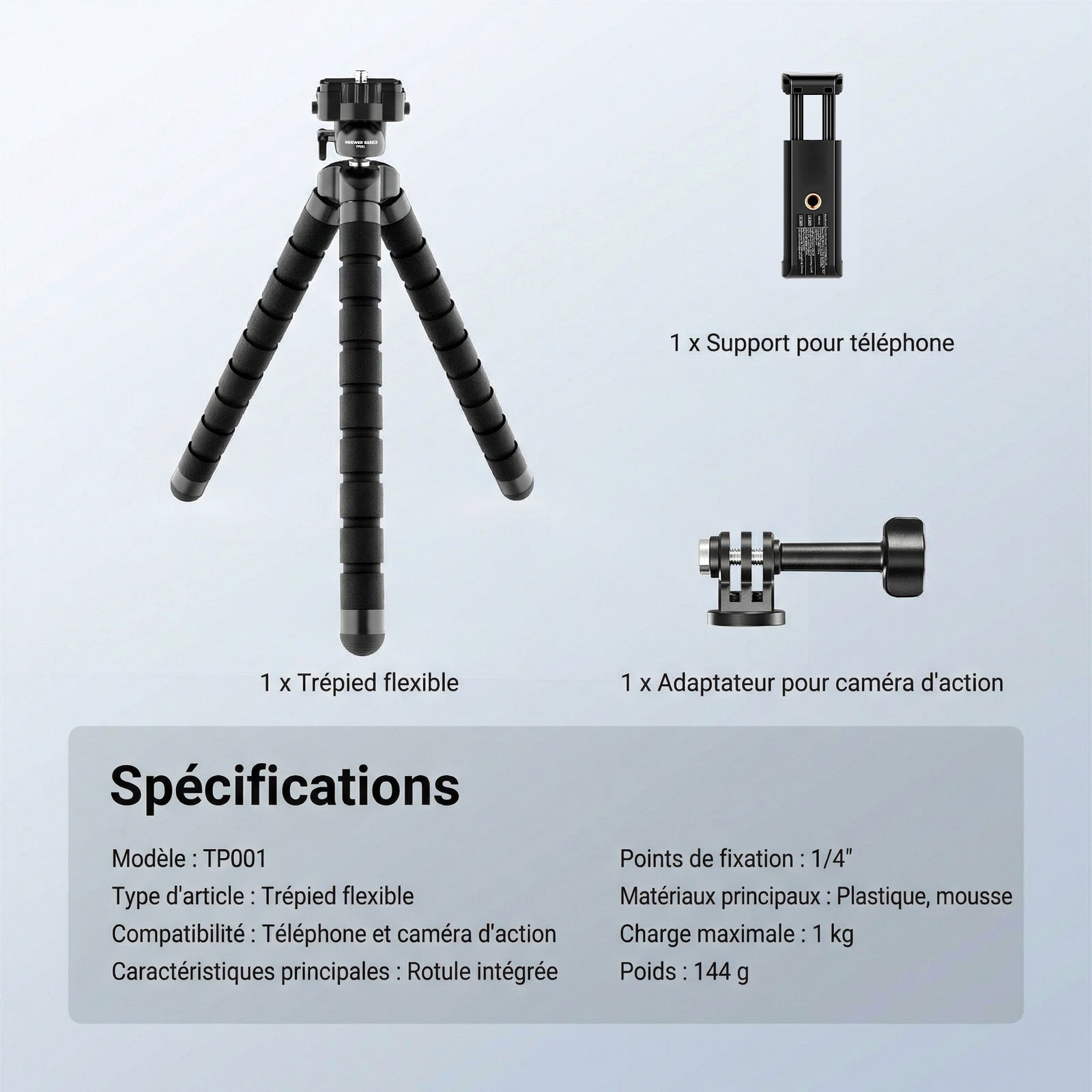 - 1 × Trépied flexible