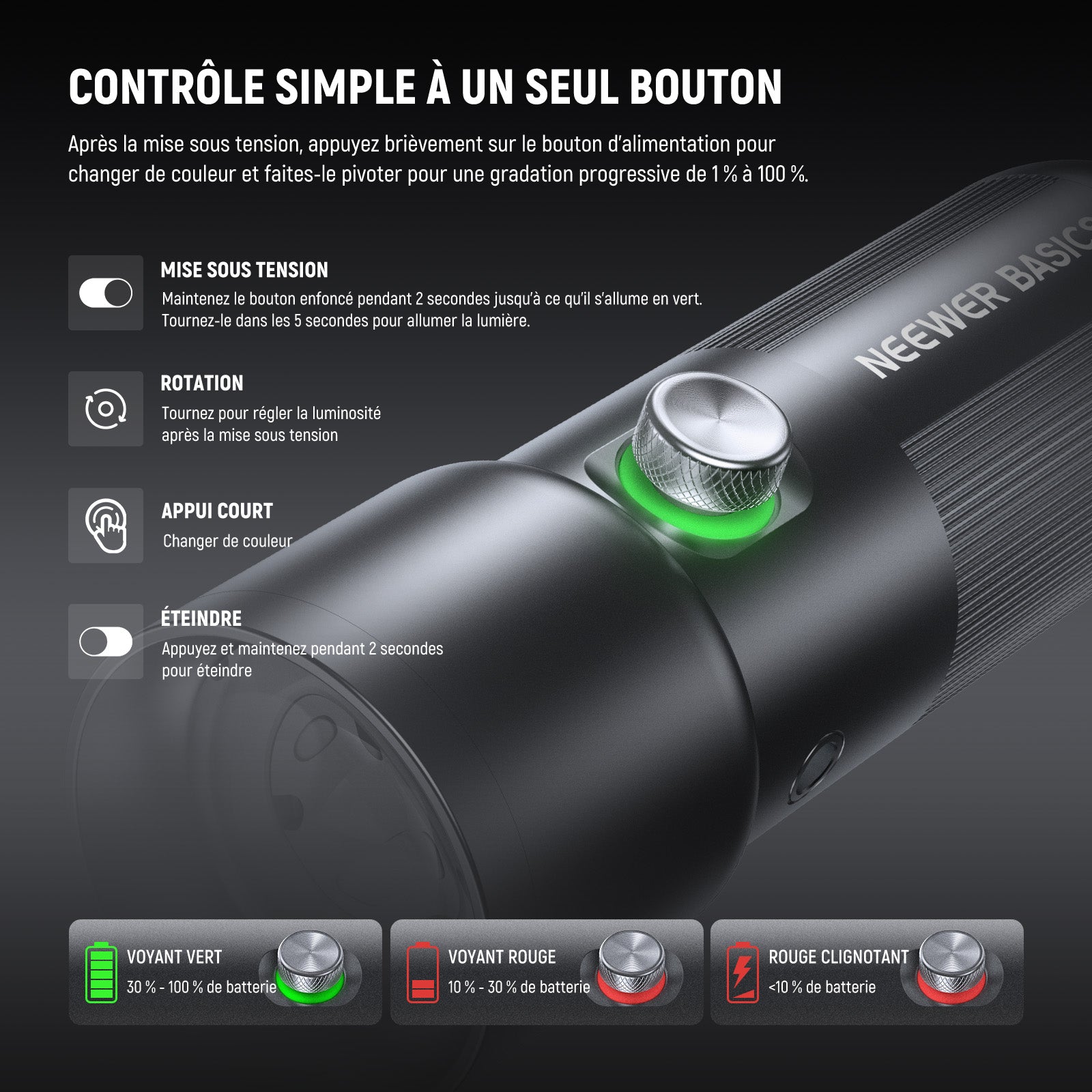 NEEWER BASICS est une nouvelle gamme de produits lancée par la marque Neewer, conçue pour offrir un excellent rapport qualité-prix. Grâce à une ingénierie rigoureuse et à un perfectionnement continu, cette série garantit des fonctionnalités essentielles fiables tout en restant abordable, ce qui en fait un choix idéal pour les utilisateurs débutants et grand public.