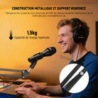 - 【Construction métallique et support renforcé】 Ce pied de micro de table est fabriqué en fer, doté d'un ressort hautement élastique et de vis renforcées. Il offre une excellente capacité de charge jusqu'à 1,5kg et prolonge la durée de vie des ressorts et du pied.