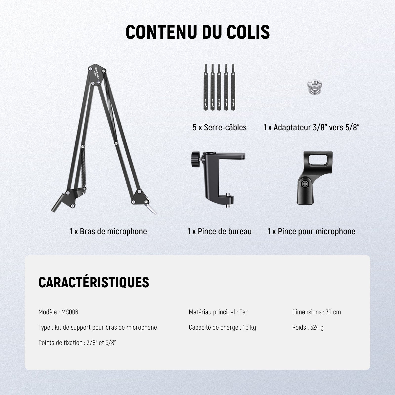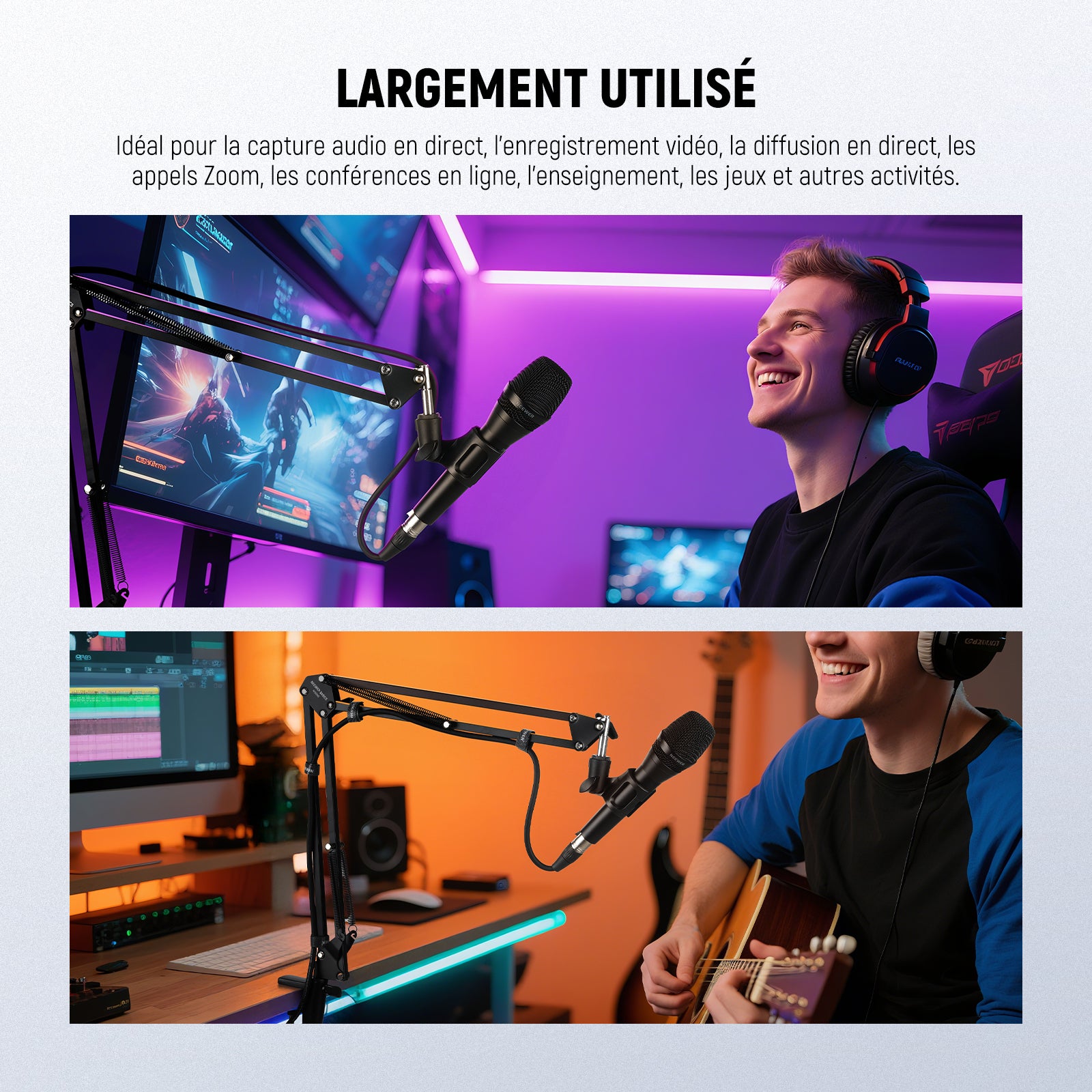 - 【Support de bureau pour bras de microphone】 Ce pied de micro est doté d'une perche en deux parties, d'une pince de fixation et d'une pince micro. Il permet un positionnement facile, flexible et silencieux de votre microphone pour la capture audio en direct,les podcasts en studio,le vlogging,l'enregistrement vidéo,le streaming en direct,les appels Zoom,les conférences en ligne,etc.Son design pliable permet un réglage en hauteur et en angle pour un positionnement optimal,tout en restant compact