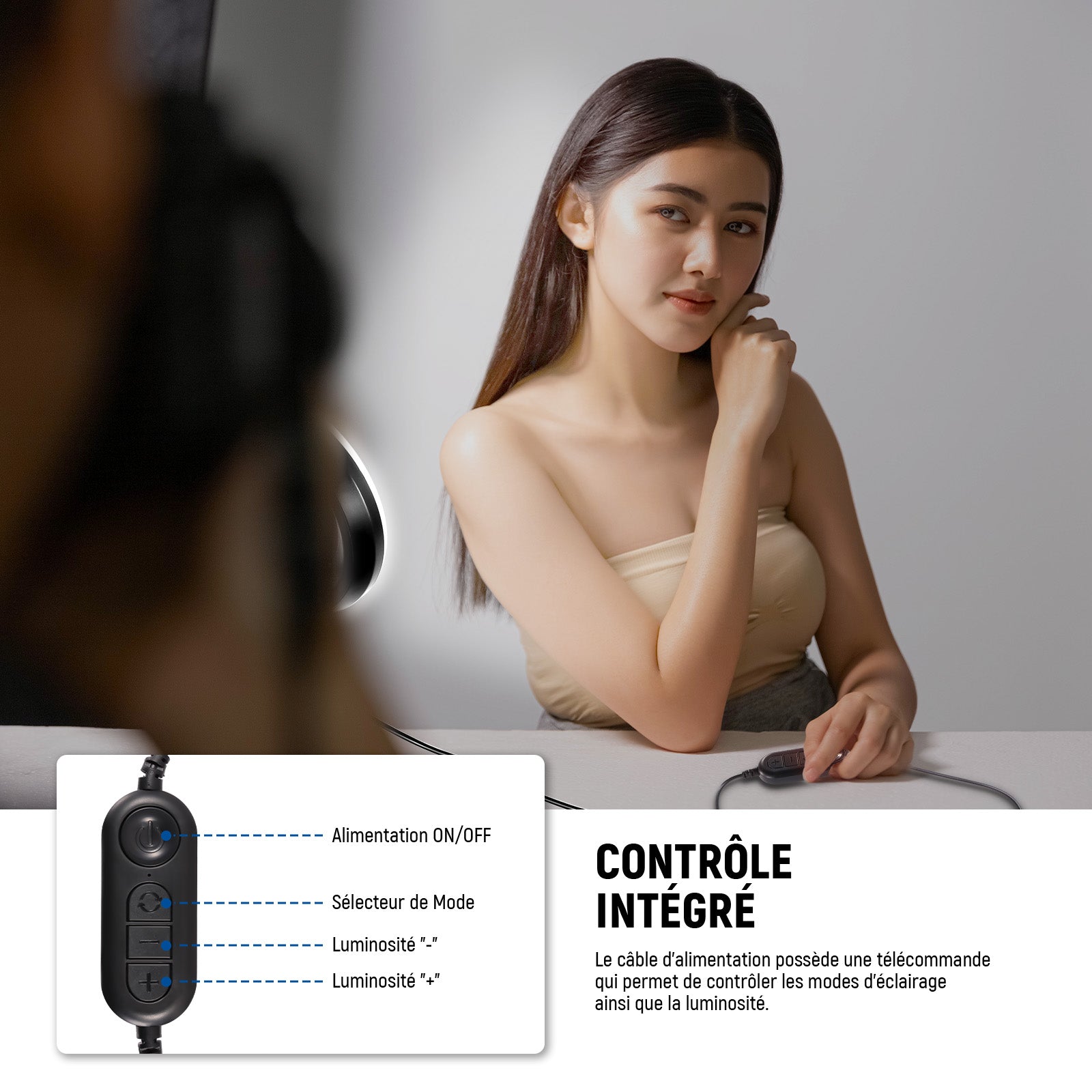 - 1 x Anneau lumineux avec pince