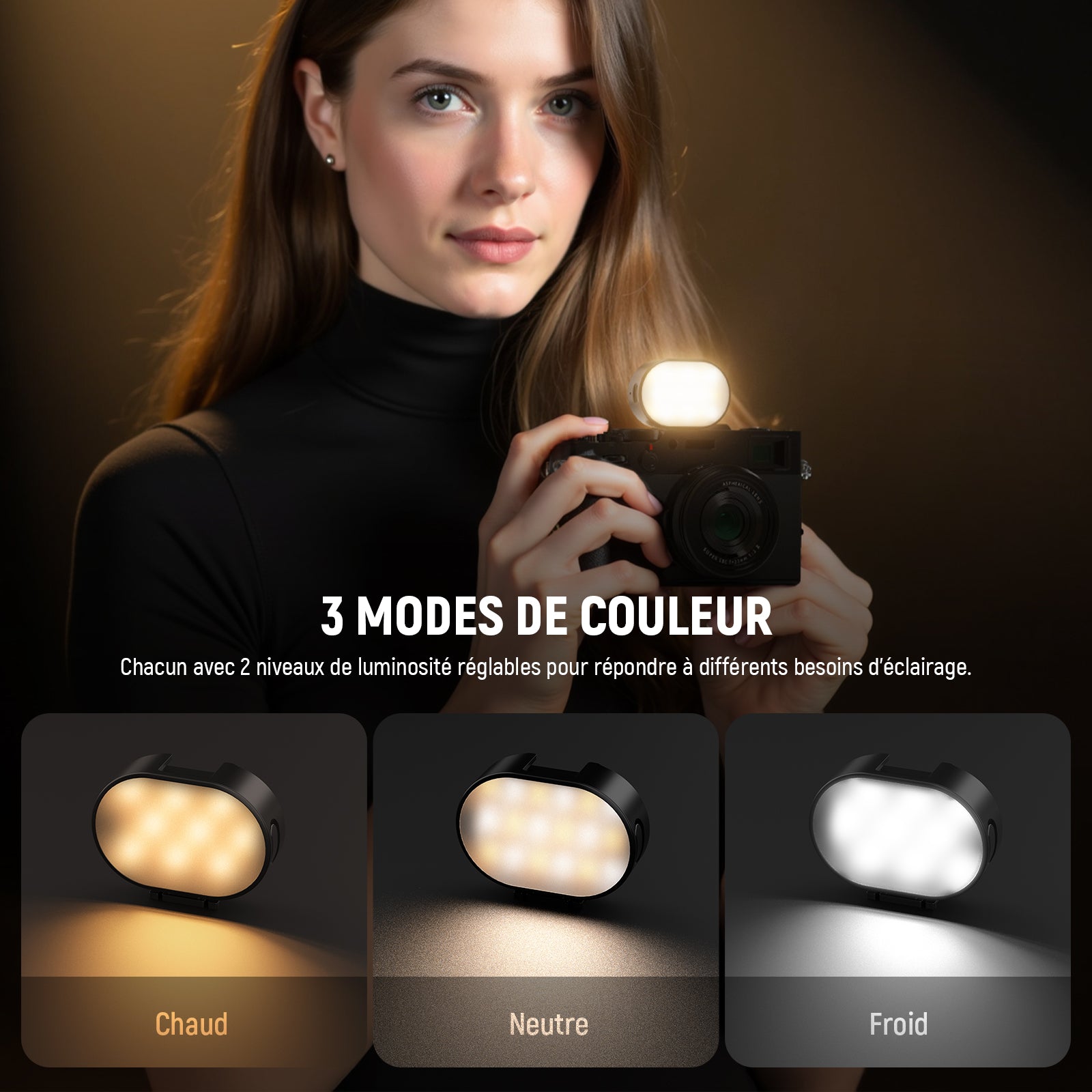 - 【3 modes de couleur avec luminosité réglable】Ce mini-éclairage cubique auxiliaire pour Caméra,équipé de 9 LED chaudes et 9 LED froides haute performance,offre 3 modes de température de couleur(chaud,neutre,froid),chacun avec 2 niveaux de luminosité réglables.Niveaux d'éclairage réglables pour s'adapter à différents besoins.Avec un CRI élevé de 95+/TLCI98+,il garantit une reproduction précise des couleurs.Tous les réglages se contrôlent via un seul bouton pour un réglage rapide et sans tracas.