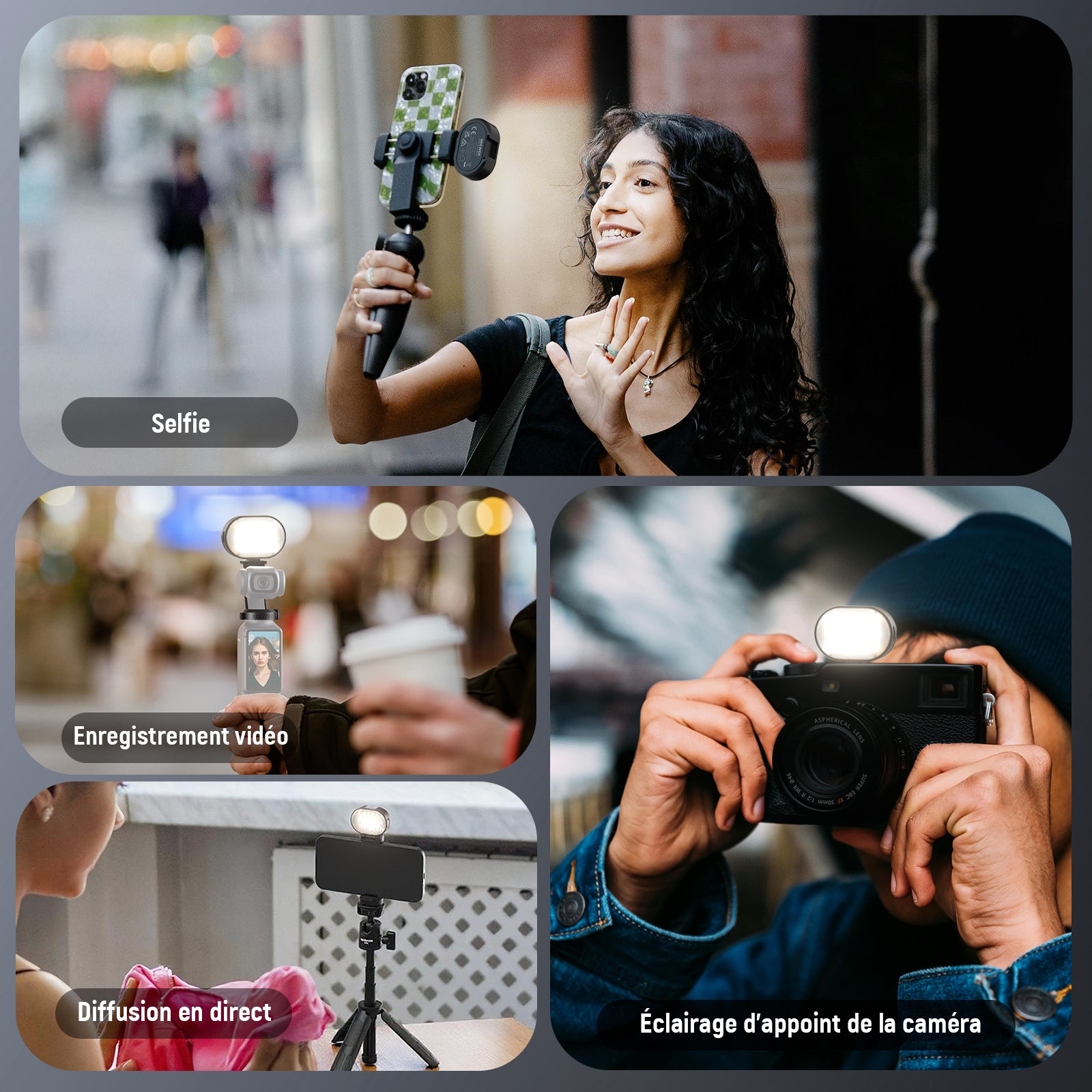 - 【Mini lampe vidéo pour appareil photo】 Mesurant seulement 5 x 3,5 x 1,4 cm et pesant seulement 20g, ce panneau lumineux n'alourdit pas votre appareil photo et offre un éclairage doux et flatteur pour sublimer votre image. Compact et facile à transporter, il est idéal pour les films de voyage, les vlogs nomades, les selfies, la photographie, l'enregistrement vidéo, les séances photo en studio, les éclairages principaux pour YouTube, TikTok, les courts métrages sur les réseaux sociaux, etc.