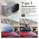 - 【Combinaison de filtres ND et PL】 Combinant les fonctions ND et PL, les filtres ND/PL améliorent le contrôle de l'exposition et améliorent la couleur, le contraste et les détails de vos images tout en réduisant efficacement l'éblouissement et les reflets. En simplifiant votre kit d'équipement et votre flux de travail, ils sont idéaux pour l'enregistrement vidéo en extérieur et la photographie de paysage