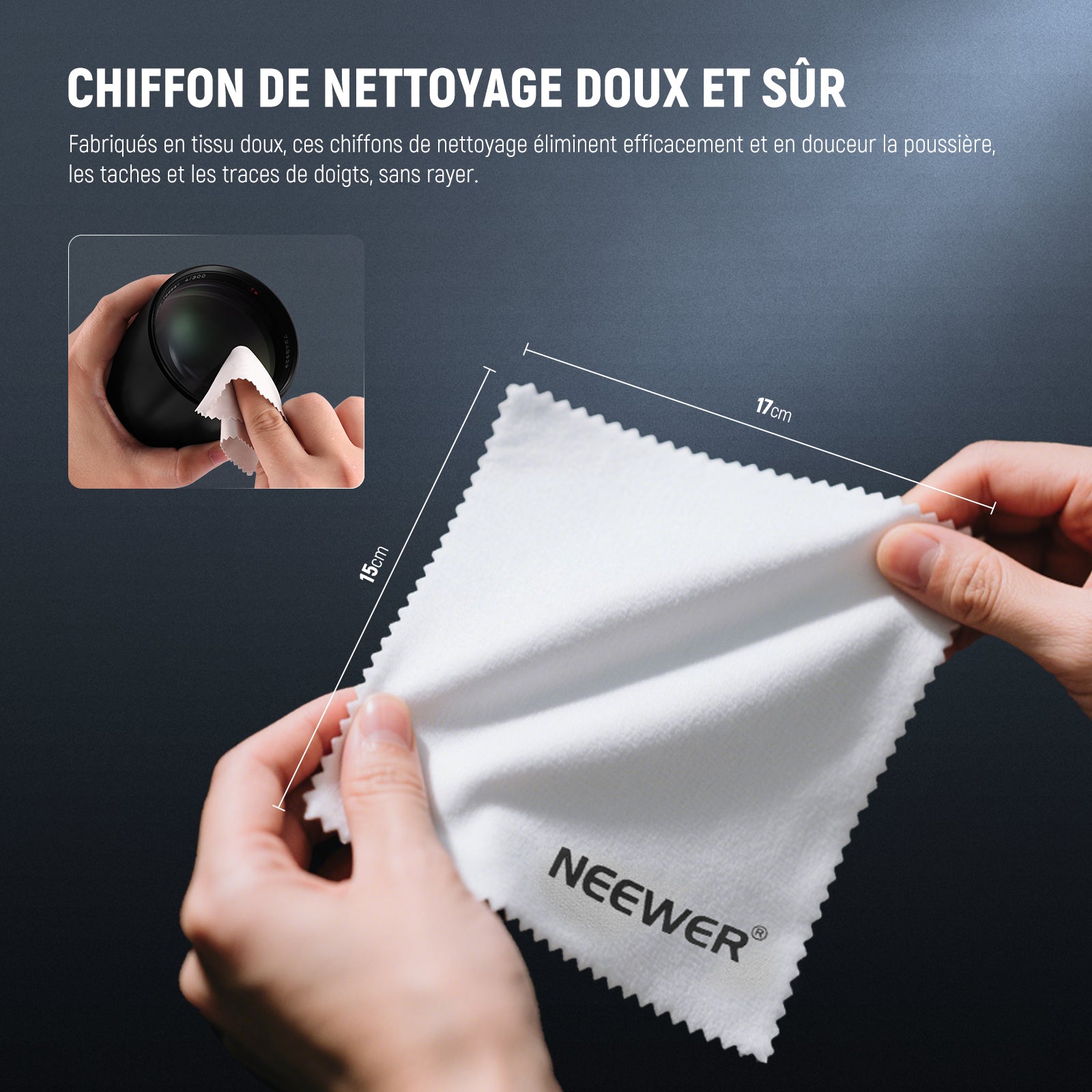 • 【Chiffon de nettoyage doux】 Élimine en douceur et efficacement la poussière, les taches et les traces de doigts sans rayer. Idéal pour nettoyer les surfaces délicates des appareils électroniques, écrans, objectifs d'appareil photo, lunettes, montres et bijoux.