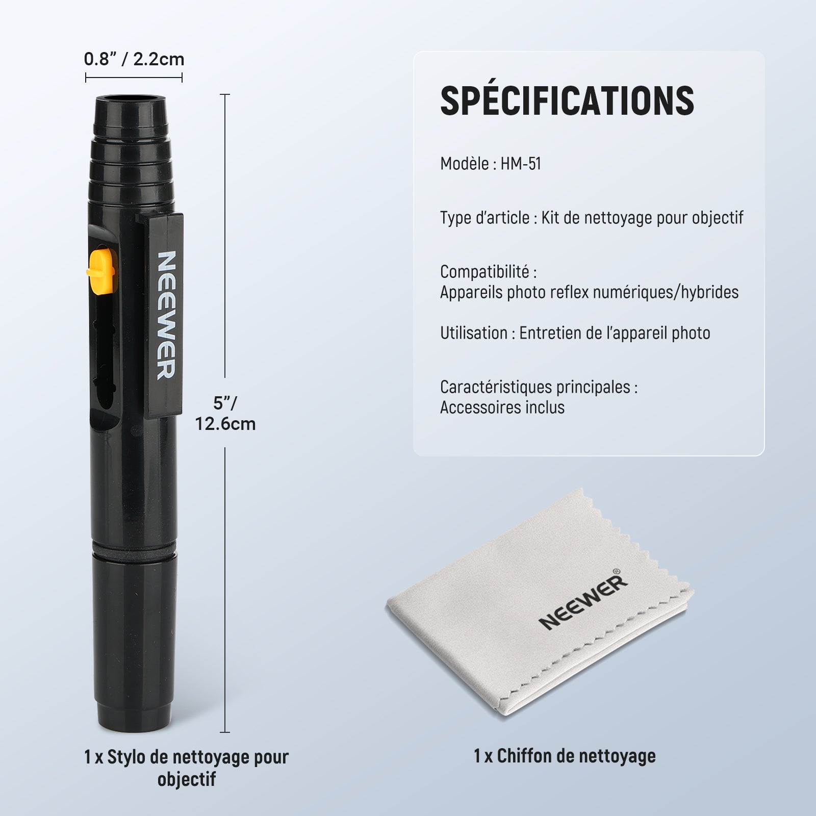 NEEWER HM-51 2 en 1 Kit d'Accessoires de Nettoyage d'Objectifs de Caméras