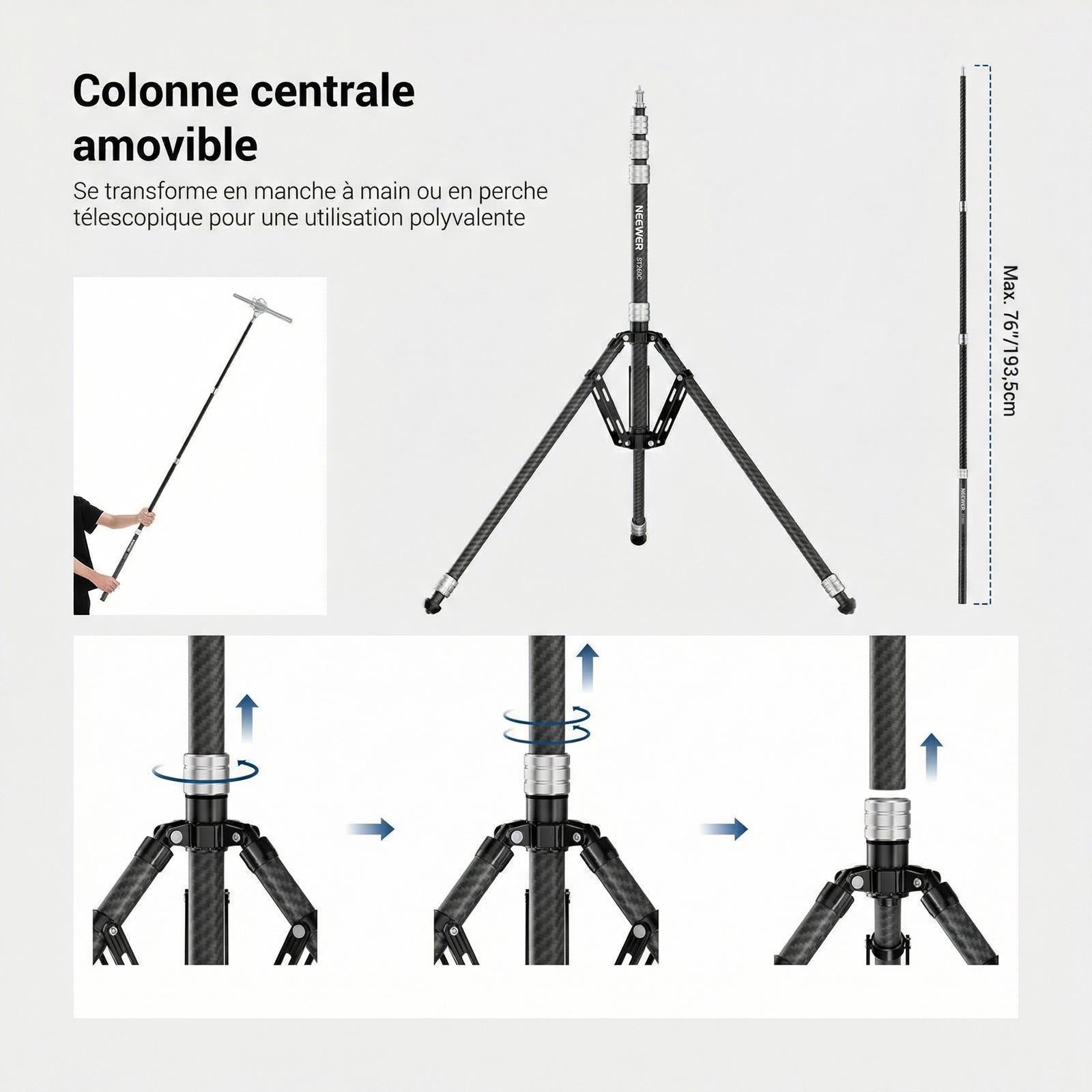 NEEWER ST260C Trépied en Fibre de Carbone 260cm