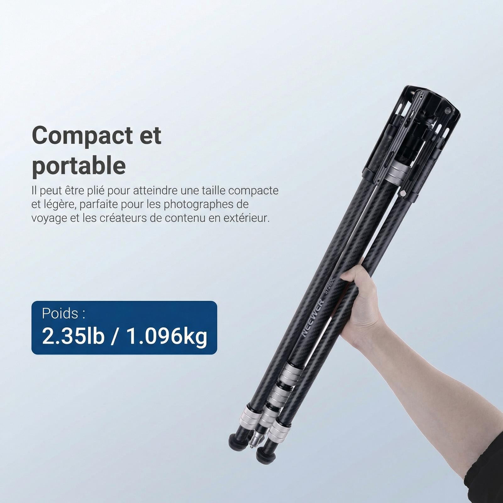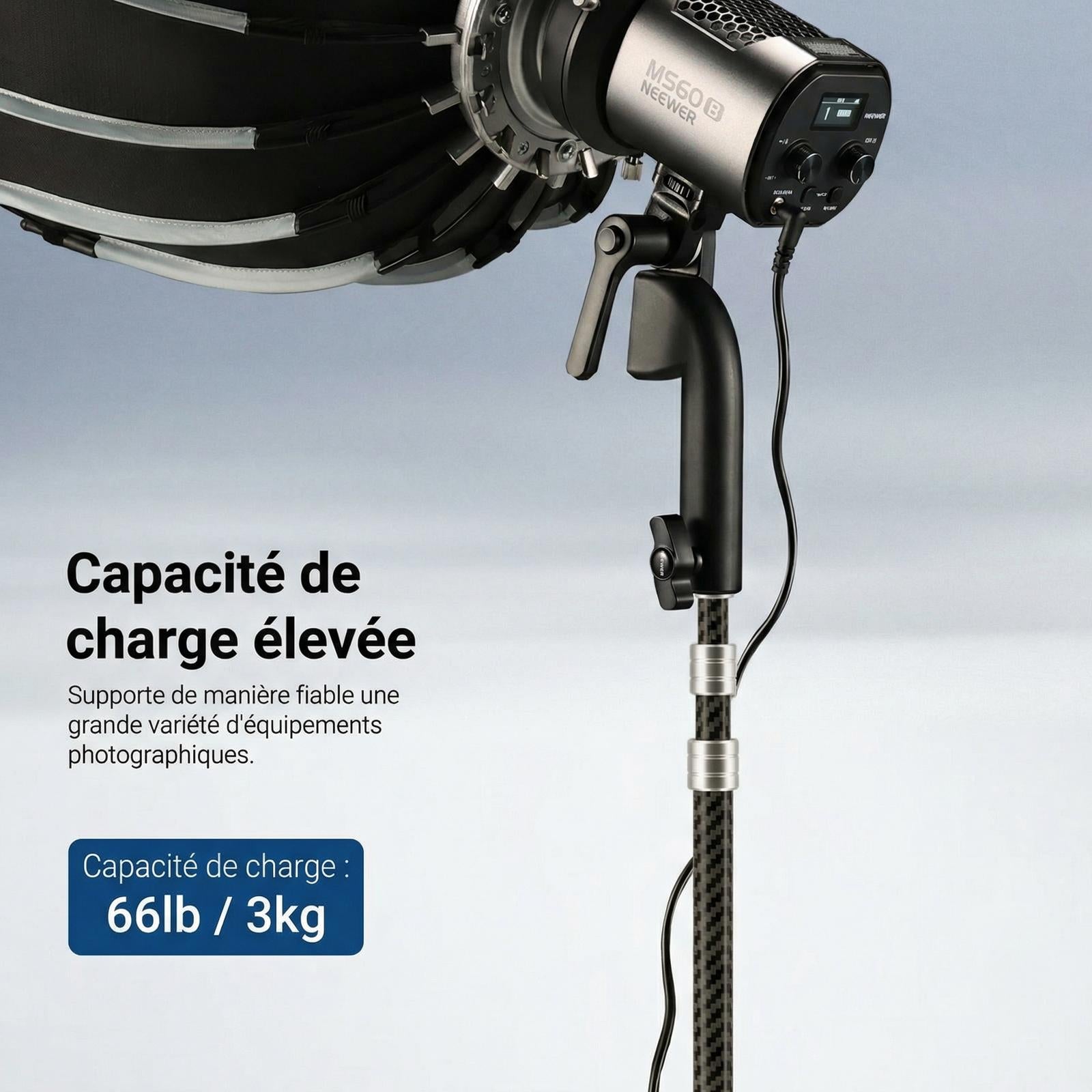 - Trépied en fibre de carbone résistant aux chocs : le support d'éclairage pour photographie NEEWER ST260C est fabriqué en fibre de carbone haute résistance, surpassant les supports en aluminium ou en fer en durabilité et portabilité. Résistant aux chocs et à la casse, il peut supporter des charges allant jusqu'à 3 kg
