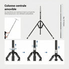 - Plage de hauteur de 89 à 259,1 cm avec colonne amovible : composé d'une colonne centrale à 3 sections et de 2 pieds de section, ce trépied de lumière s'étend de 89 à 260 cm, vous permettant de positionner votre équipement de photographie et d'éclairage à différentes hauteurs pour les prises de vue en studio à faible angle et en hauteur. La colonne centrale de 61 à 193,5 cm est amovible, se doublant comme une perche à main ou une rallonge de microphone pour plus de polyvalence