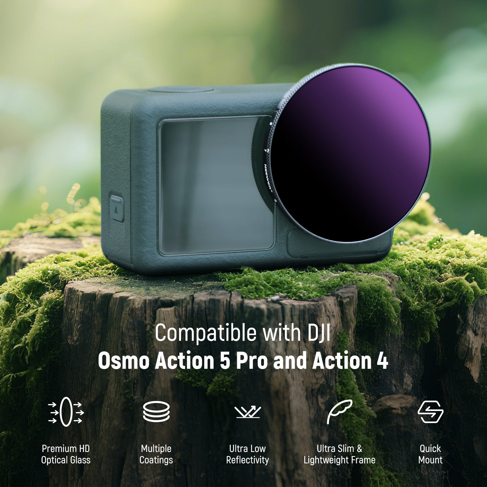 - 【Pour Action 5 Pro et Action 4 】 Compatible avec DJI Osmo Action 5 Pro et Action 4 Adventure Combo, ce filtre à densité neutre variable est idéal pour une large variété d'activités de sport, y compris le surf, le kayak, le ski, le VTT, le parachutisme, le skateboard et la randonnée, accessoire de photographie essentiel et équipement indispensable pour le créateur de contenu et l'influenceur