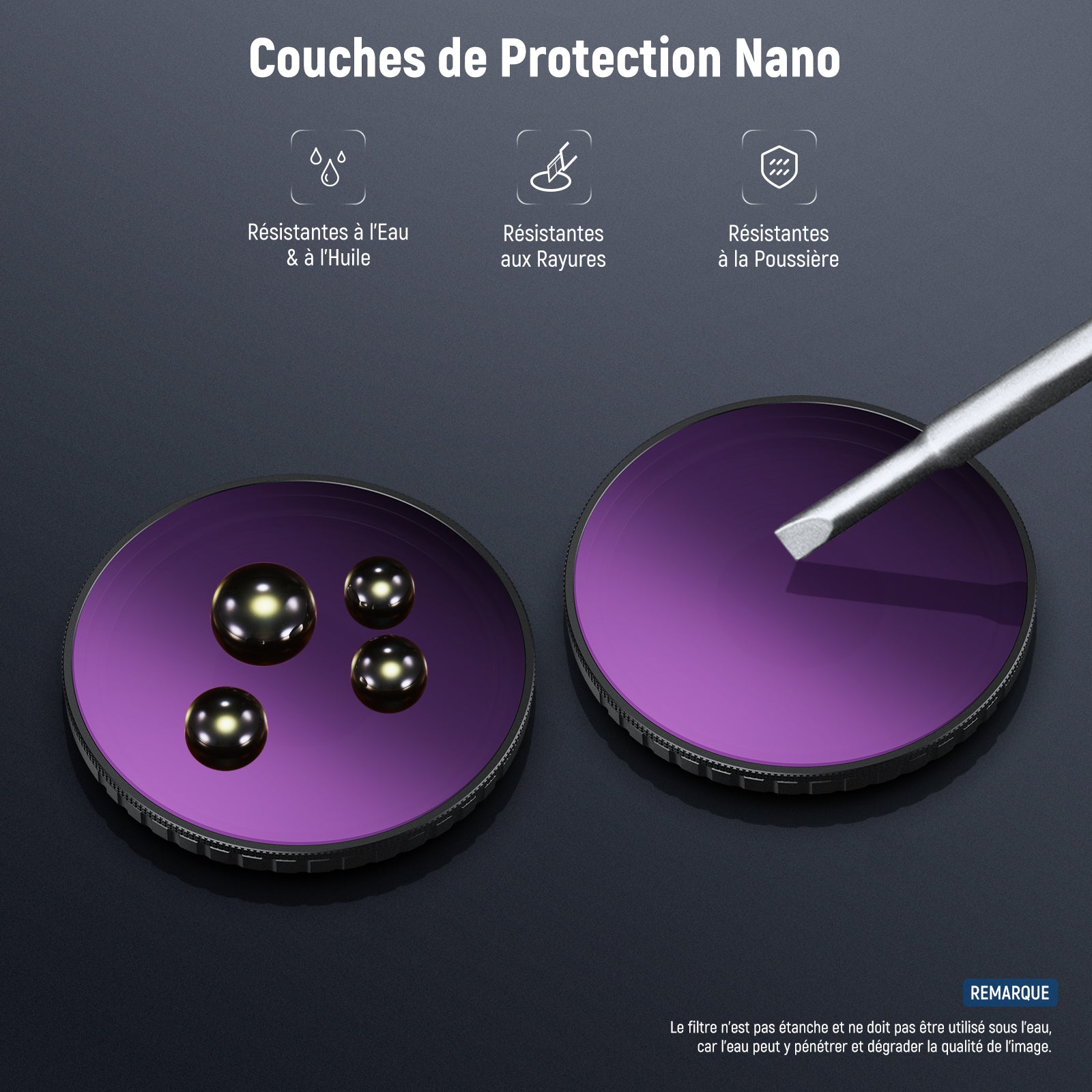 - 【Cadre Hyper Fin & Léger】 Fabriqué en alliage d'aluminium de première qualité, le cadre mince du filtre avec une finition mate garantit une durabilité exceptionnelle dans des conditions difficiles tout en évitant la vignette indésirable et le reflet de la lentille