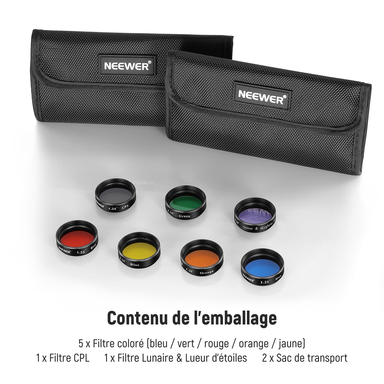 NEEWER Kit de 7 Filtres 1,25" pour Astronomie – Filtres Colorés, Filtre Lunaire & CPL