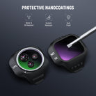 - Multicoated Optical Glass- Optical glass with multilayer, dual-sided coatings ensures clear footage while resisting water, fingerprints, and scratches. A cleaning cloth is included for daily care