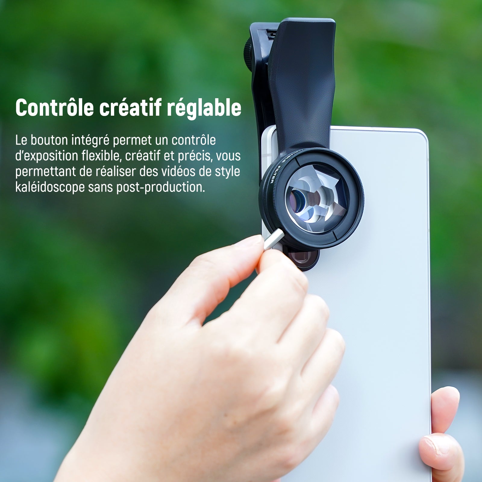 - Contrôle créatif réglable : le bouton rotatif intégré permet un contrôle d'exposition flexible, créatif et précis, de sorte que vous pouvez enregistrer des vidéos de style kaléidoscope sans retouche