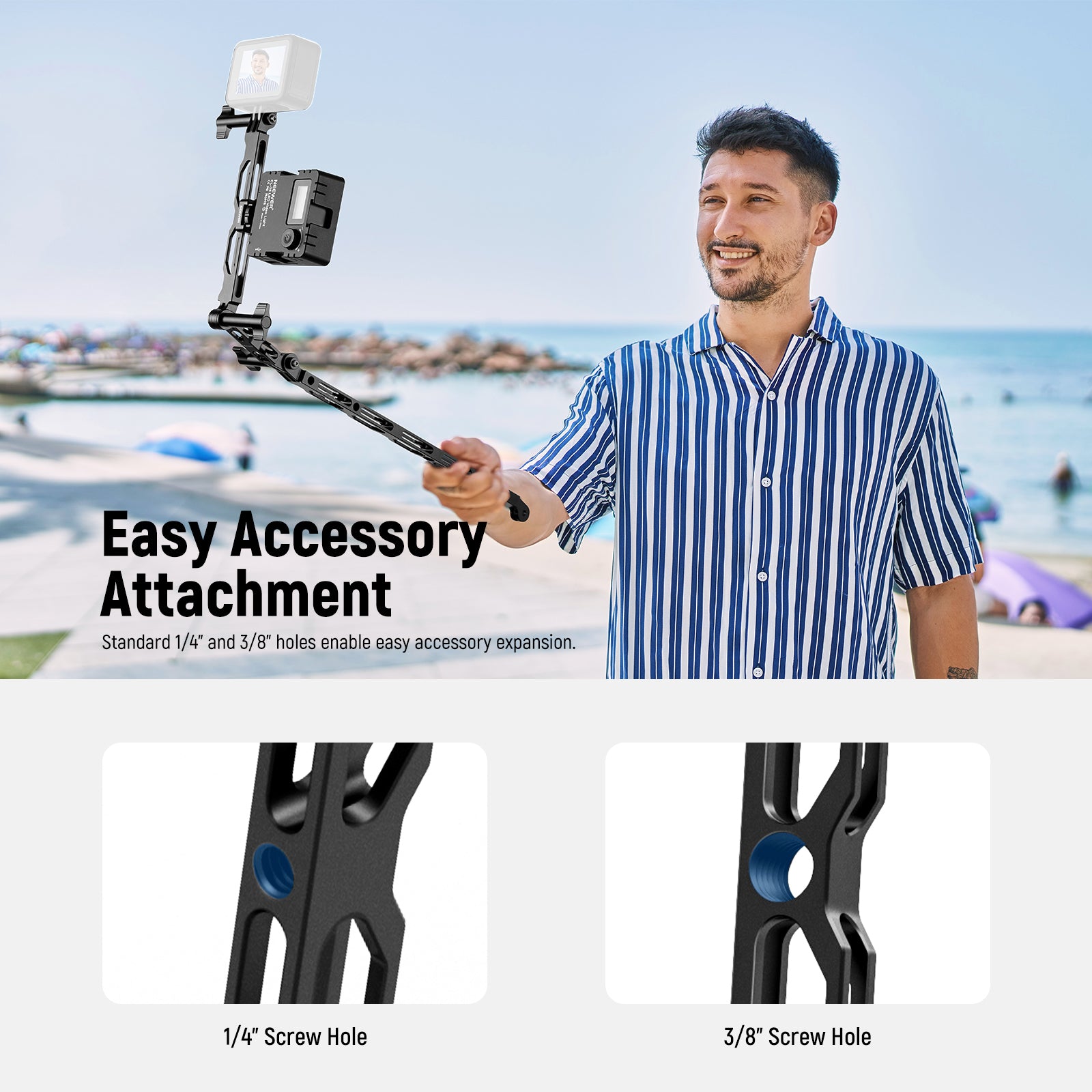 - 【Multiples points de montage】 Les points de montage de 1/4" et 3/8" permettent d'installer de petits accessoires comme un bras magique, une pince ou une mini-lampe LED. Les trous sur les bras d'extension améliorent la ventilation du vent et réduisent la résistance à l'air