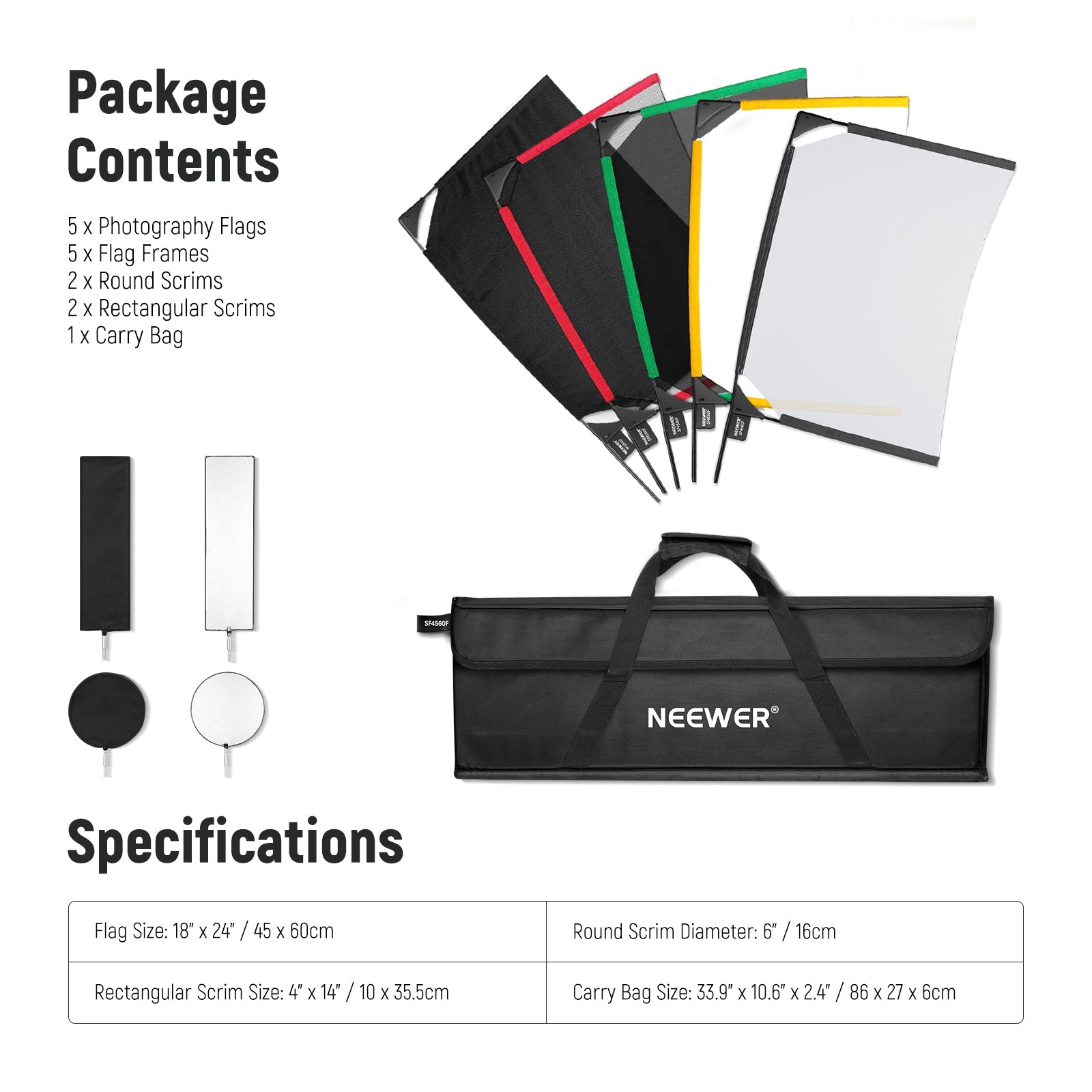 NEEWER Kit de Drapeau Pliable 5-en-1 pour la Photographie