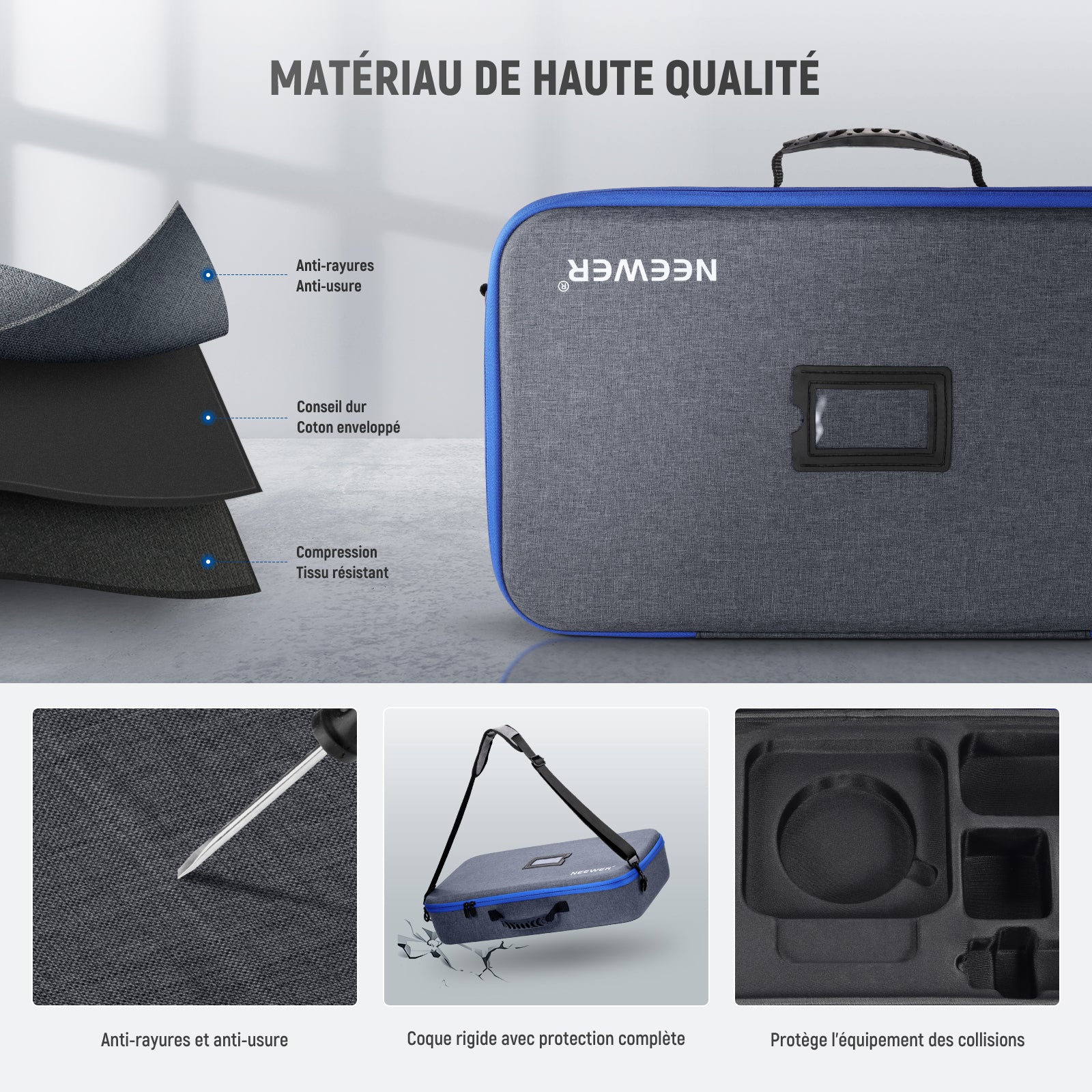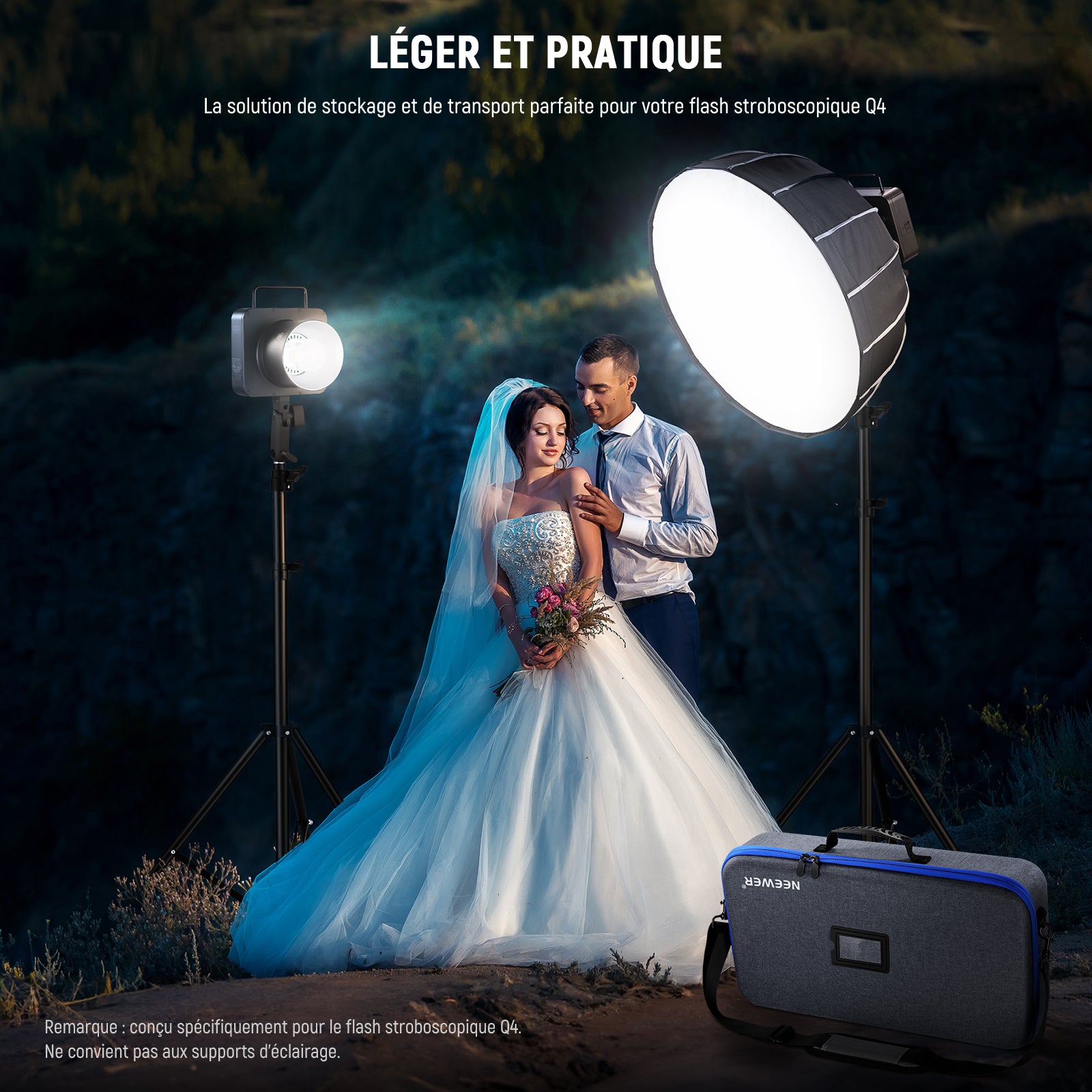 - 【Sac de voyage de rangement portable pour Q4】 Ce sac est conçu sur mesure et entièrement compatible avec NEEWER Q4 flash stroboscopique extérieur et les accessoires associés, ce sac de transport de 20,5" x 11" x 4,3"/52 x 28 x 11cm offre des rainures dédiées pour l'organisation. la lampe de poche Q4, la poignée inclinable, le réflecteur Bowens standard, les piles, la gâchette sans fil, le cordon d'alimentation, l'ampoule flash.