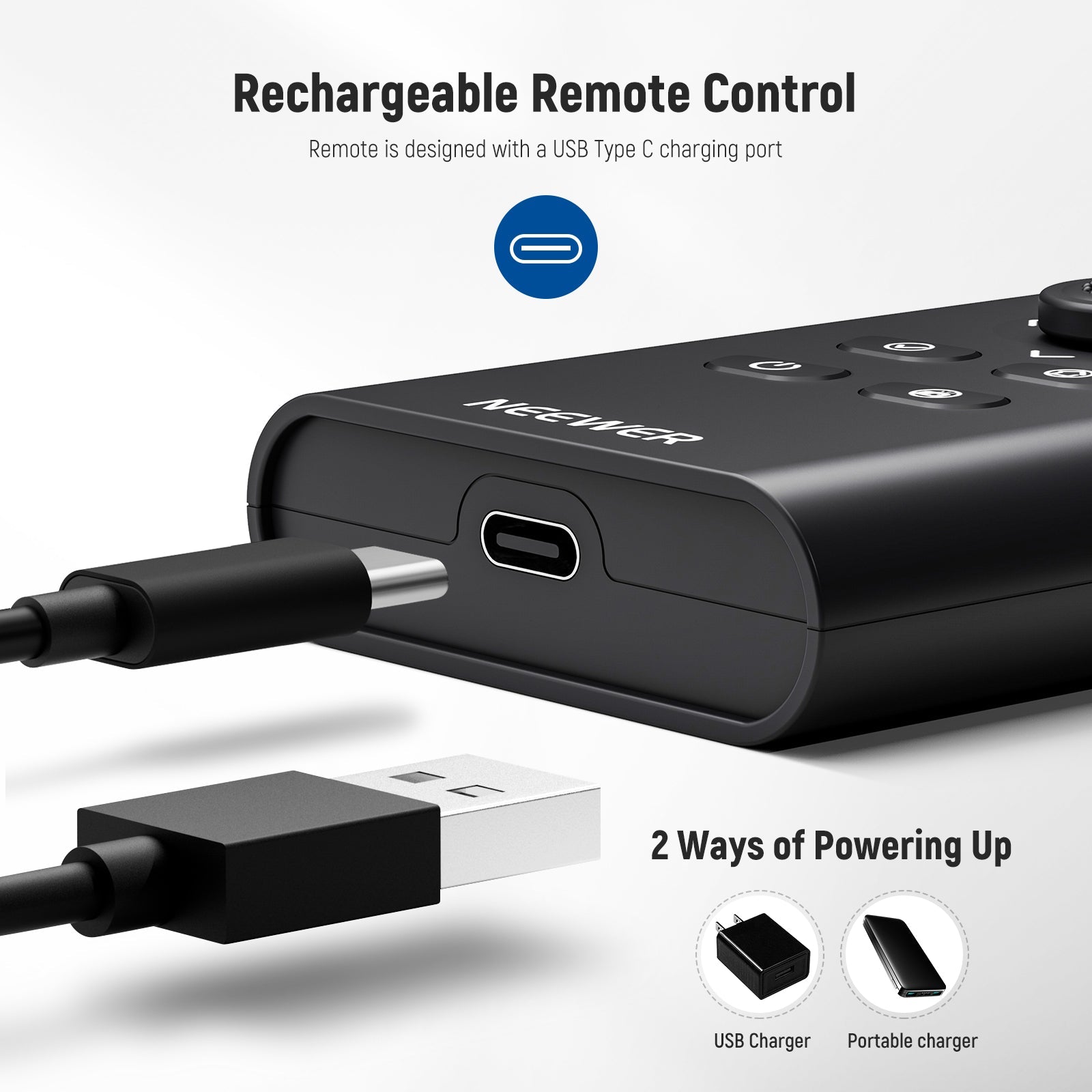- 【Commande à distance rechargeable】 Contrairement à la commande à distance traditionnelle alimentée par des piles jetables, cette commande à distance coulissante améliorée est conçue avec un port de charge USB de type C. Chargez rapidement la commande à distance en la connectant à un chargeur mural ou à un chargeur portable avec sortie DC5V/1A