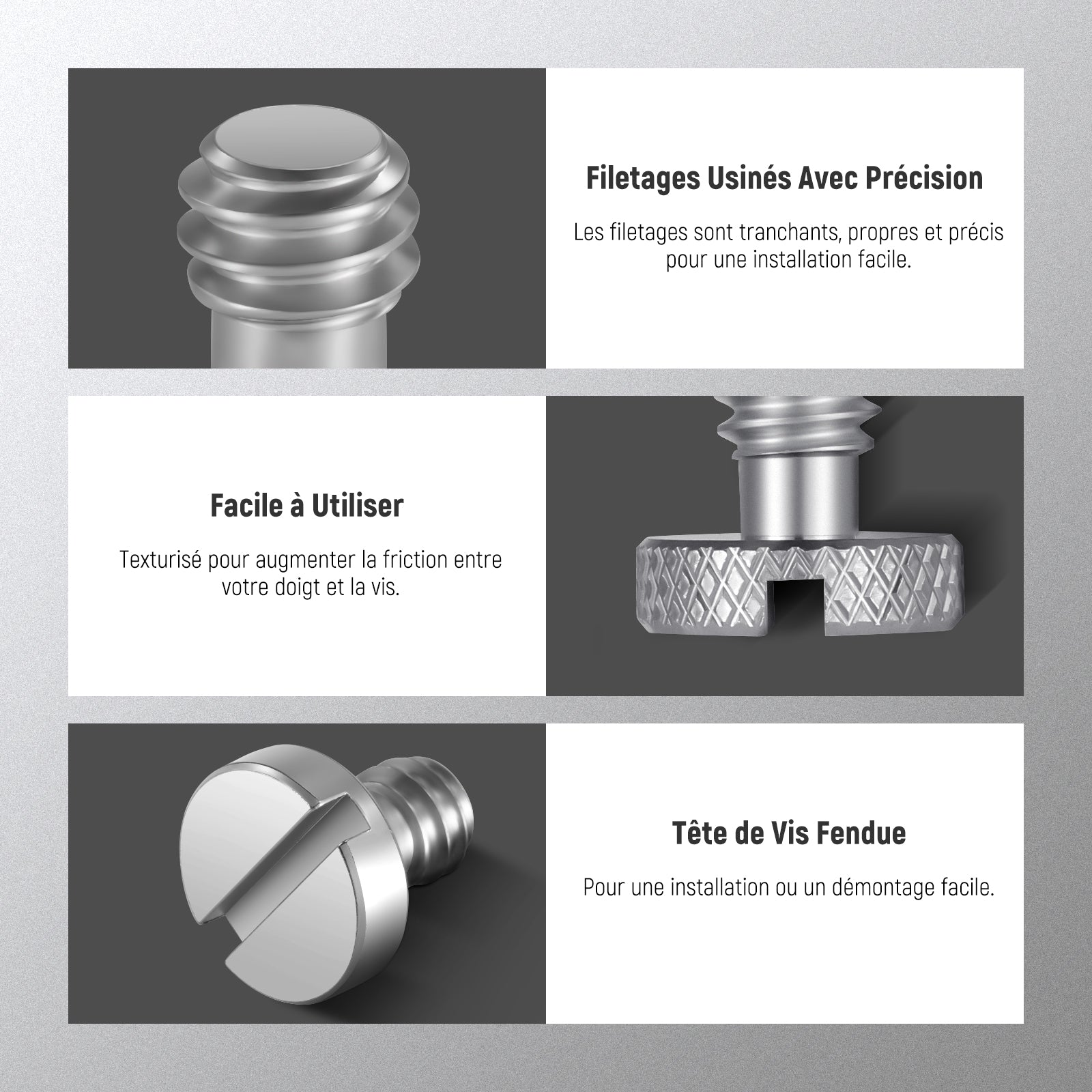 - 【Compatibilité Plus Large】 Les vis à fente 1/4'' sont compatibles avec les plaques de montage de caméra, les plaques à dégagement rapide, les trépieds, les monopodes et les supports de caméra et de télescope avec des trous filetés 1/4''.